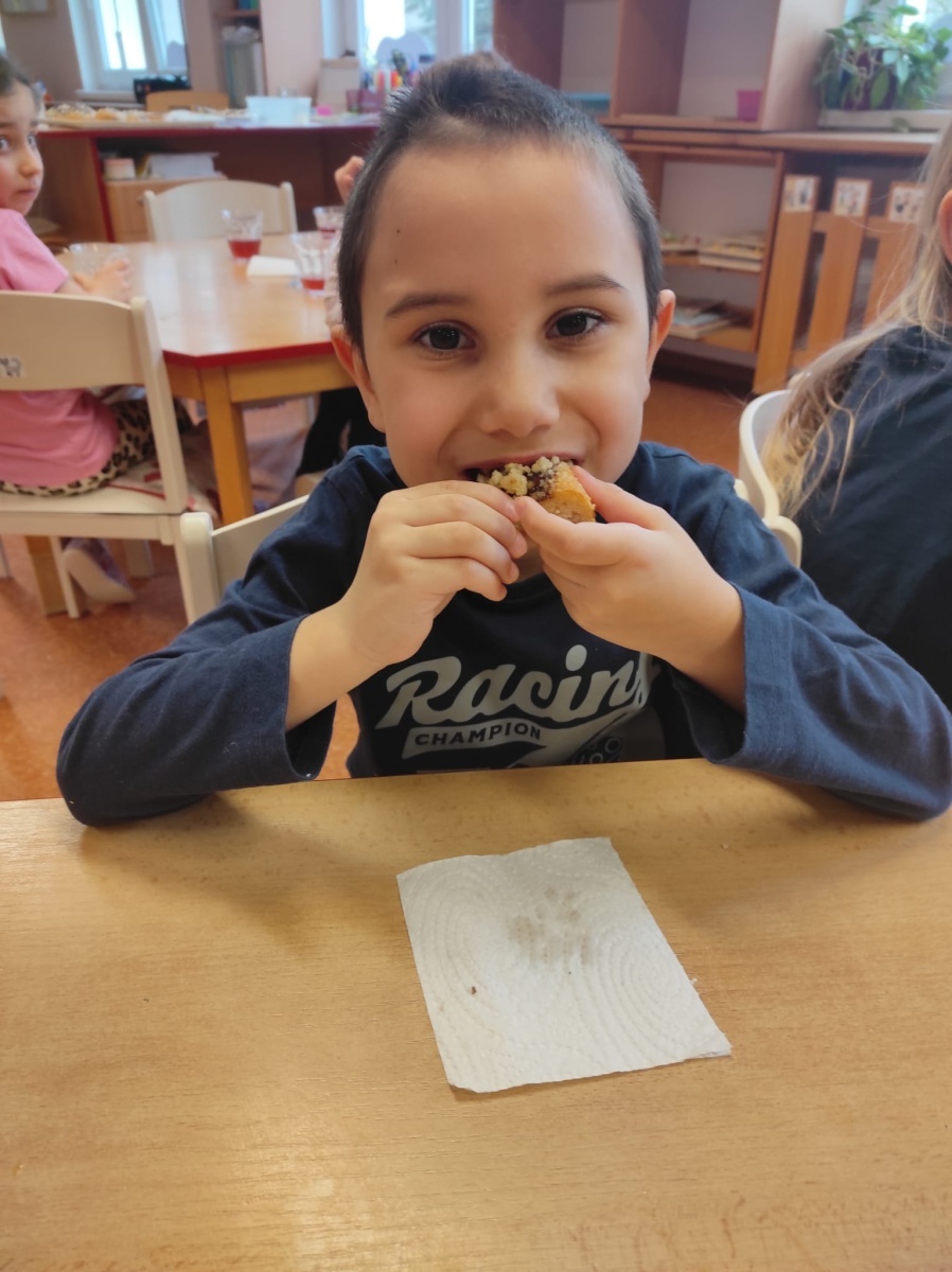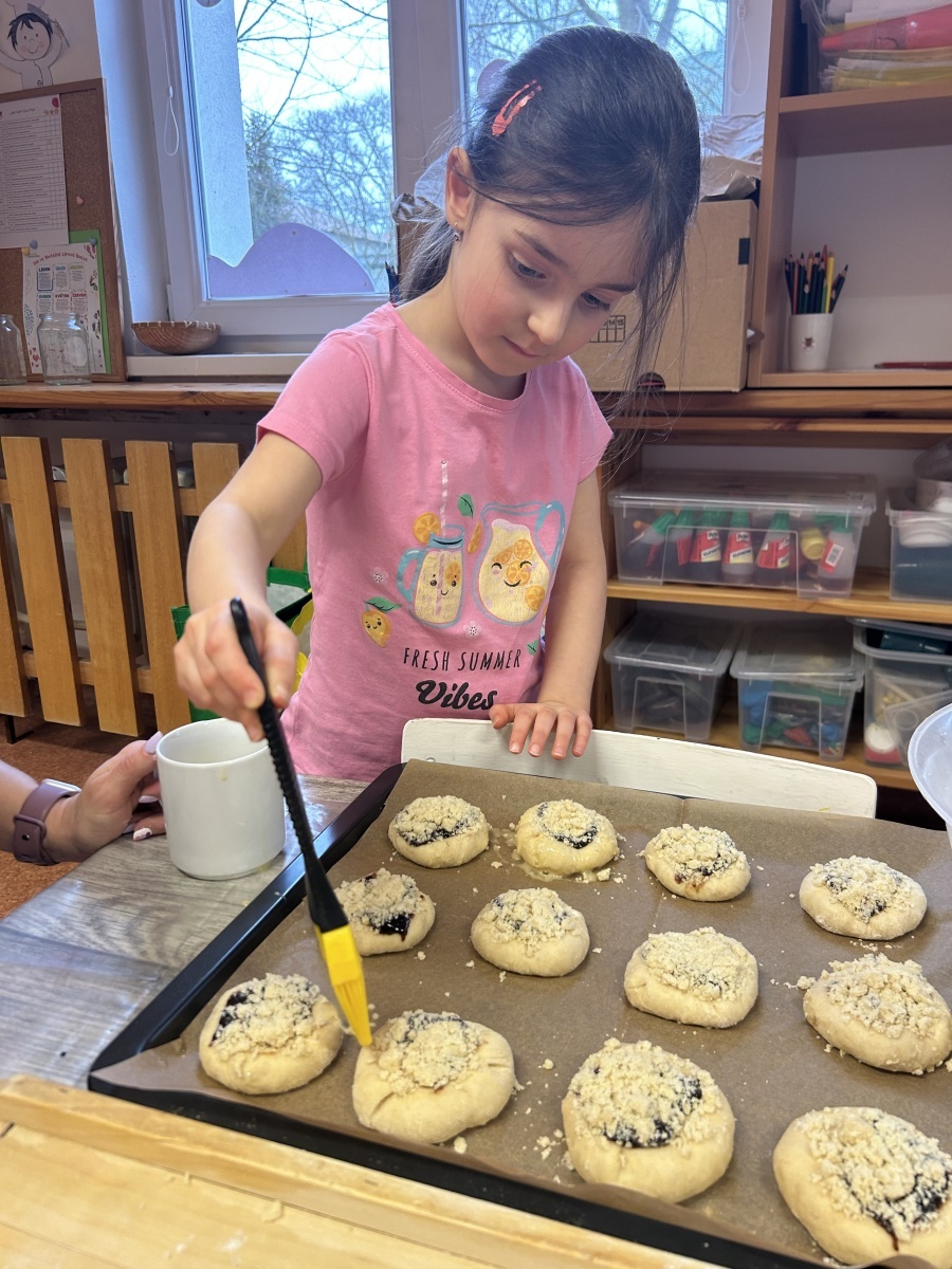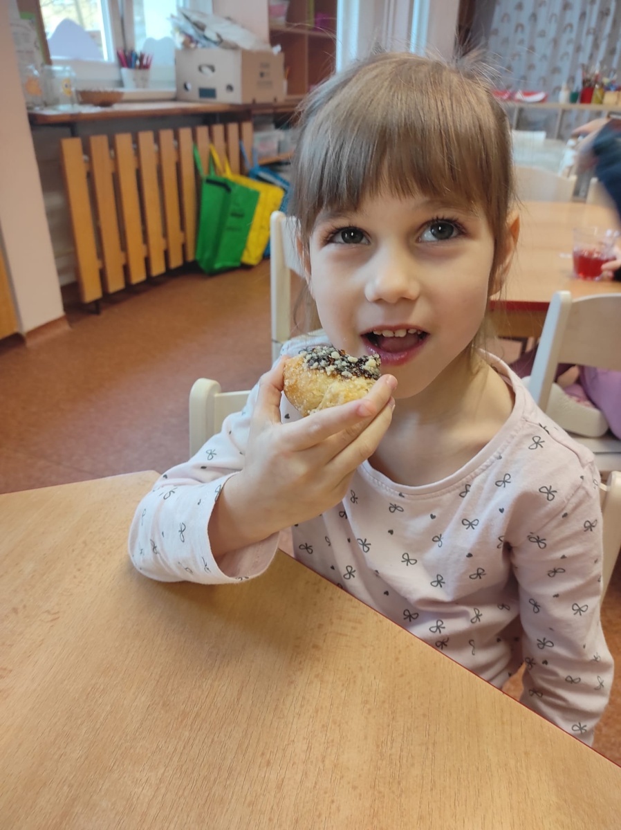 Po obědě přišla ta nejlepší chvíle – ochutnávka. Každé dítě si s radostí pochutnalo na svém výtvoru a druhý koláč si odneslo domů, aby se o masopustní dobrotu podělilo s maminkou a tatínkem. Vůně koláčů zůstala ve školce ještě dlouho poté a připomínala krásný společný zážitek.