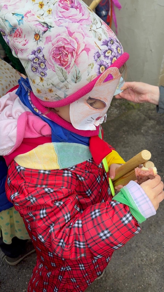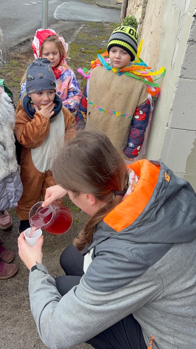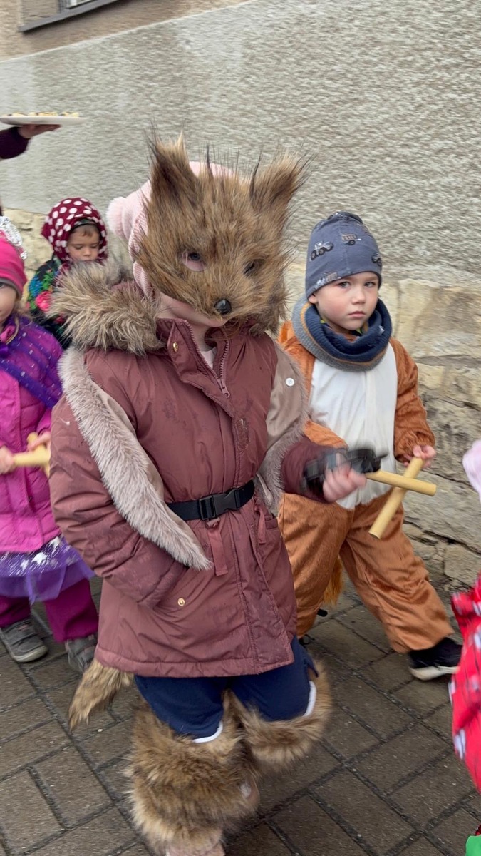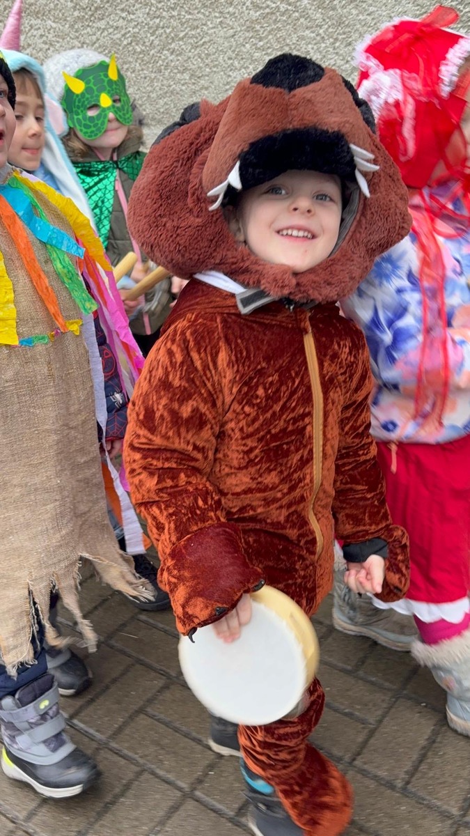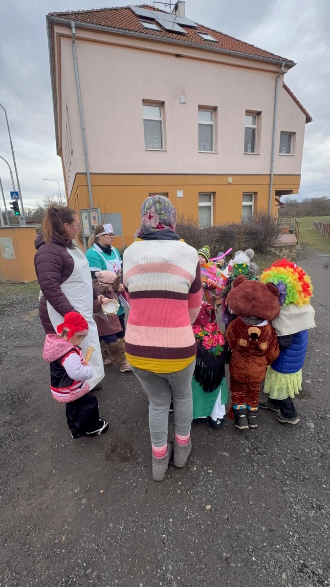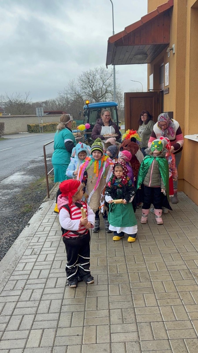 Dodržujeme tradice a zvyky. Zároveň děti provázíme tradičním masopustním veselí, kdy naprosto dokonale funguje spojení školky a obce. Dnes jsme se vdali do ulic naší obce, kde na nás čekali přátelé a místní obyvatelé. Nejen, že jsme se zatočili v kole v rytmu polky, ale děti byly obdarovány úsměvem, ovocem i pochvalou. My ze školky jsme nabízeli na oplátku písničky a masopustní zabijačkové pochoutky, samozřejmě nechyběl ani domácí chléb. Dnešní odpoledne spojilo naše spoluobčany s mateřskou školou pevným poutem, které musíme spolčeně ochraňovat.