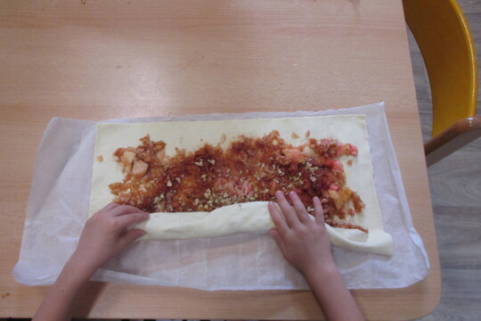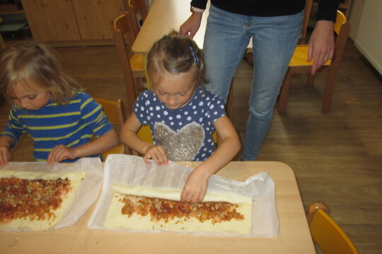 Děti z mateřské školy v rámci výuky velmi často pečou a vaří. Jejich oblíbeným receptem je ručně vyrobený štrůdl.