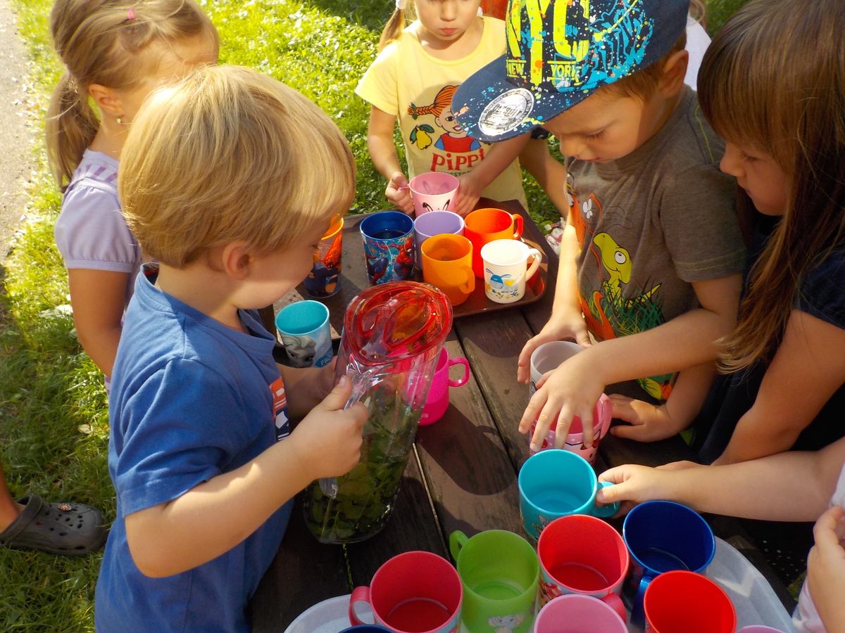 Společně s dětmi jsme se rozhodli, že si vytvoříme meduňkový elixír. V naší malé bylinkové zahrádce nám roste plno meduňky, kterou jsme na elixír využili. Samy děti si natrhaly kousky meduňky, omyli ji v umývárně a společně vložili do džbánu s čistou vodou. Děti ochutnaly náš elixír, který jim zachutnal a v příštích dnech si ho společně uvaříme znovu.
