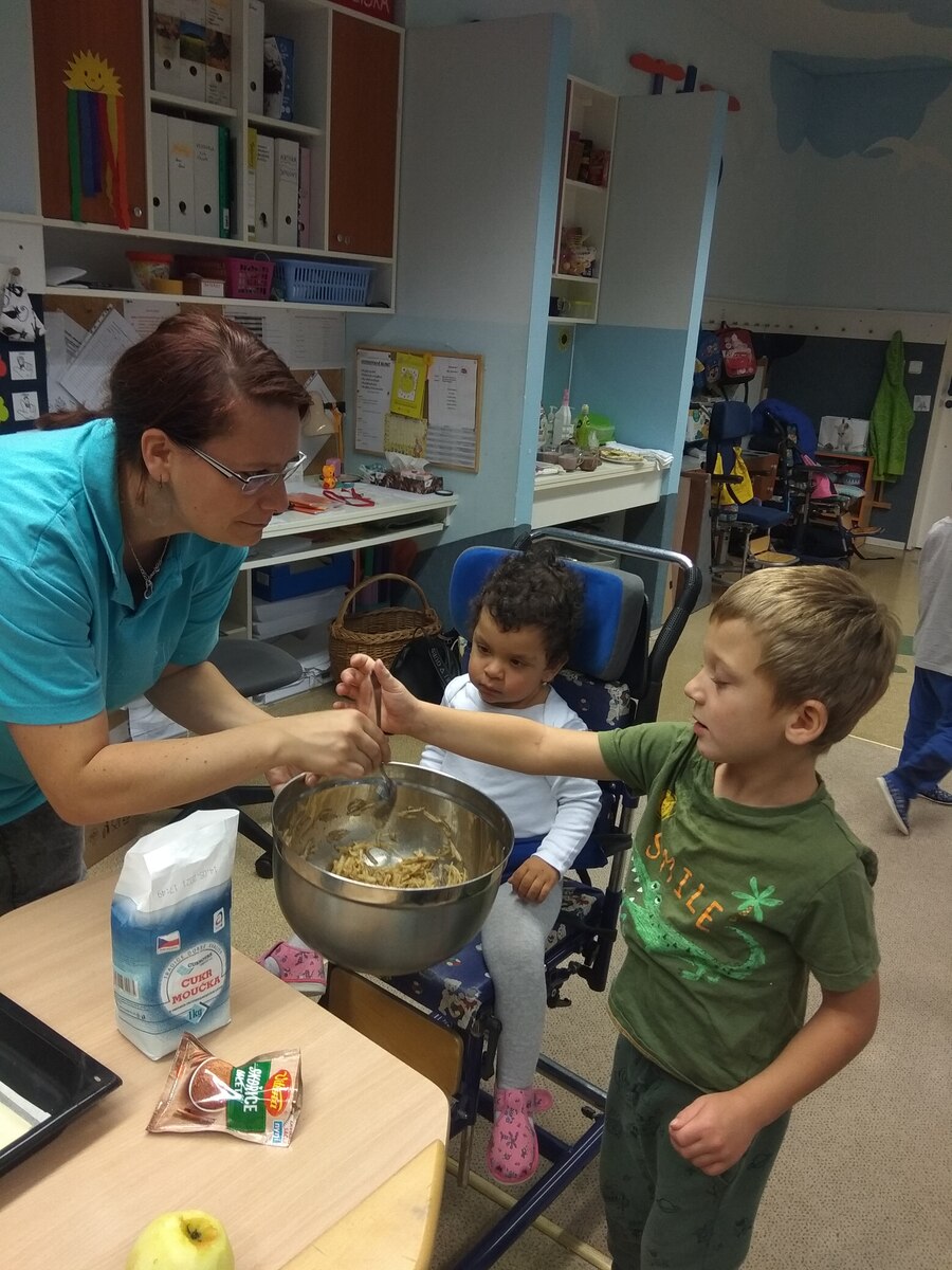 Jako každý rok si v září povídáme ve školce o ovoci a zelenině a jejich zdraví prospěšných vitamínech. Třída Berušek a třída Delfínků si z domácích jablíček upekly na svačinku voňavý jablečný štrůdl, mňam.