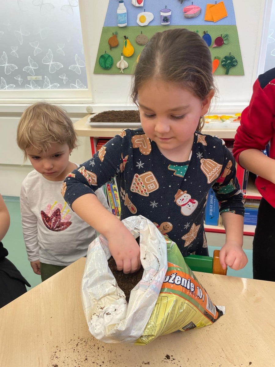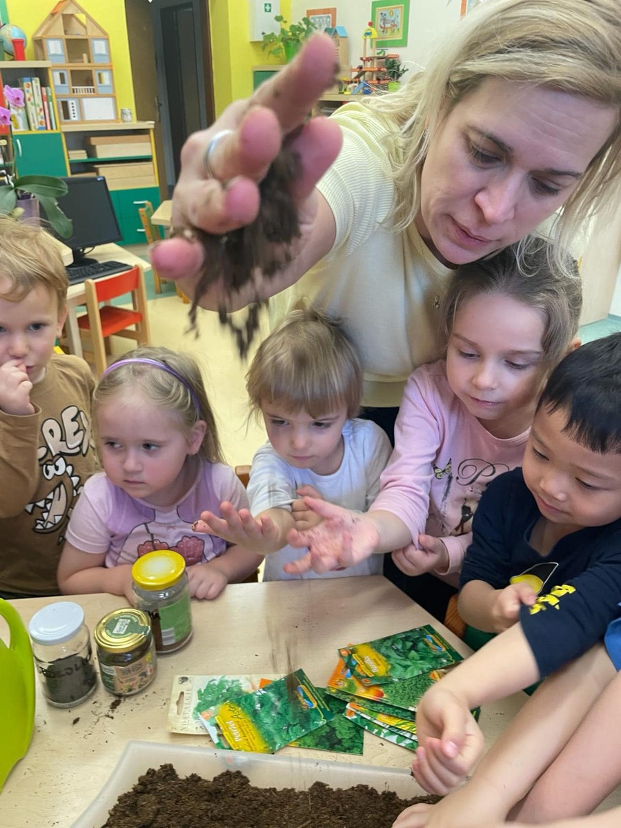 Dnes si Smíškové zasadily velmi úsměvnou formou s prožitkem co dokáže zemina, jak voní zemina a hlavně jakou má konzistenci zemina. Děti si spolu zasadily řeřichu, bazalku, kudrnku, mátu a petrželovou nať.