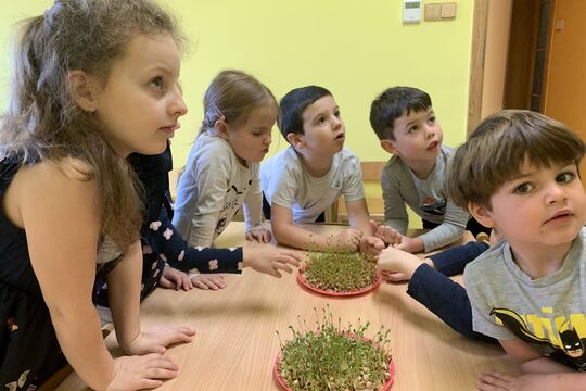 Zima se projevuje větší nemocností angín, chřipek a jiných nemocí, a proto jsme se rozhodli, že tomu půjdeme naproti. Rozhodli jsme se pro microgreens. Navlhčili jsme čočku a směs jiných luštěnin. Během necelého týdne děti viděly, jak semínka vyklíčila. Při svačině si „odvážlivci“ nastříhali výhonky na housku a ochutnali. Jeden chlapec prohlásil, že to chutná jako brokolice, kterou má rád ???? Další den si děti opět daly výhonky na chléb s pomazánkou.