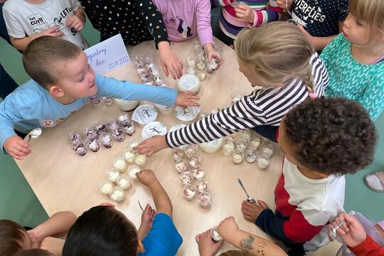 Každý týden dětem nabízíme ochutnávkový bar. Děti už měly ochutnávku ovoce, zeleniny od místních a lokálních farmářů. Ale tento týden nás čekal krásný ochutnávkový bar plný výborných jogurtů s mnoho příchutí (maliny, borůvky, jahody, čokoláda,meruňky). Děti měly možnost ochutnat jogurty rovnou od dvou farmářů a to z farmy Babina a farma Děčany.