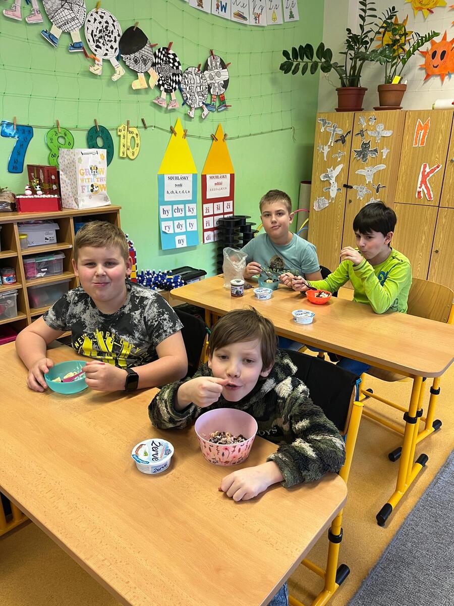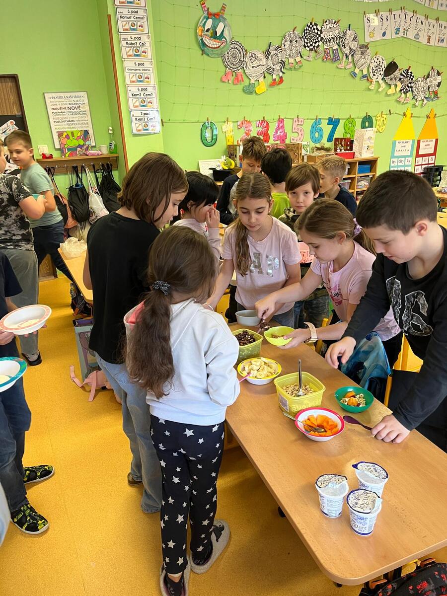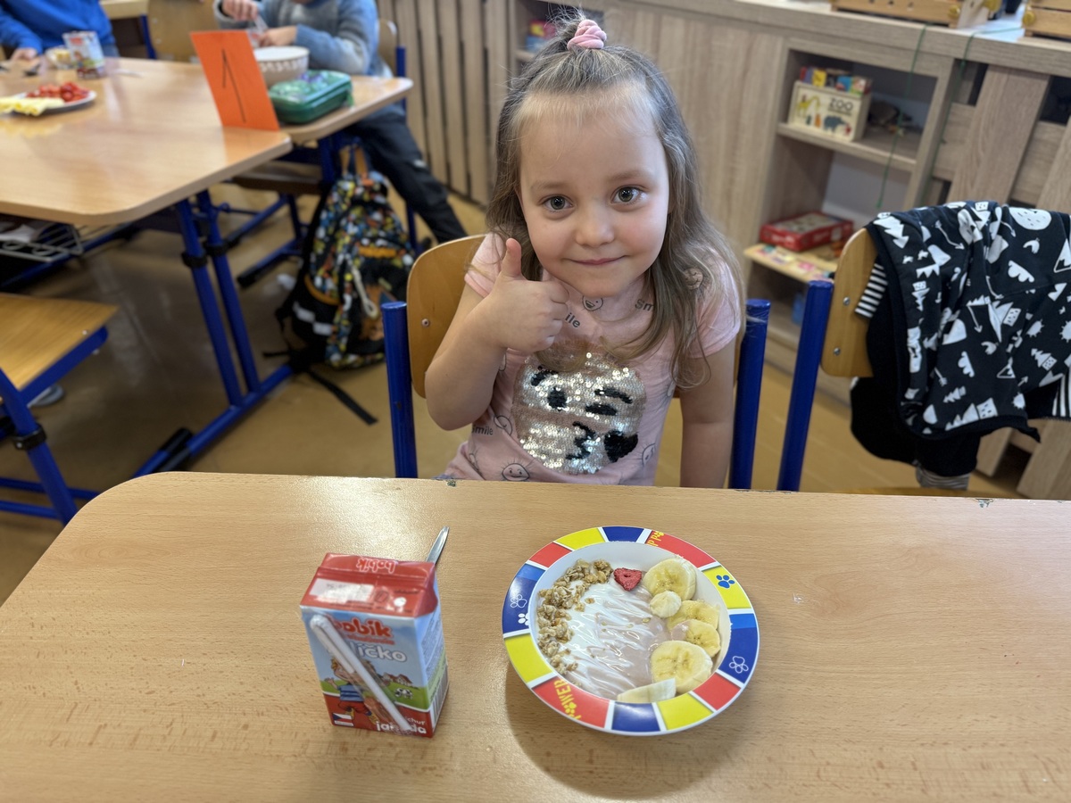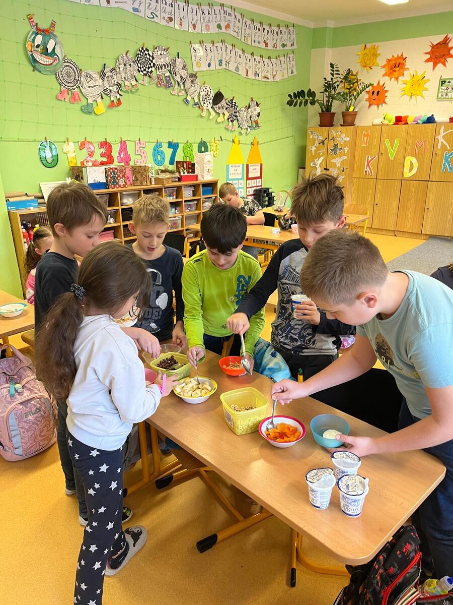 Každý učitel pojal ochutnávku po svém. Někde děti zkoušely mléčné výrobky „jen tak“, čisté a bez dochucení, jinde vznikla zdravá jogurtová snídaně – s ovocem, müsli nebo kapkou javorového sirupu. Nechyběla ani ochutnávka sýrů a povídání o tom, odkud mléčné výrobky pocházejí a proč jsou pro tělo důležité.
