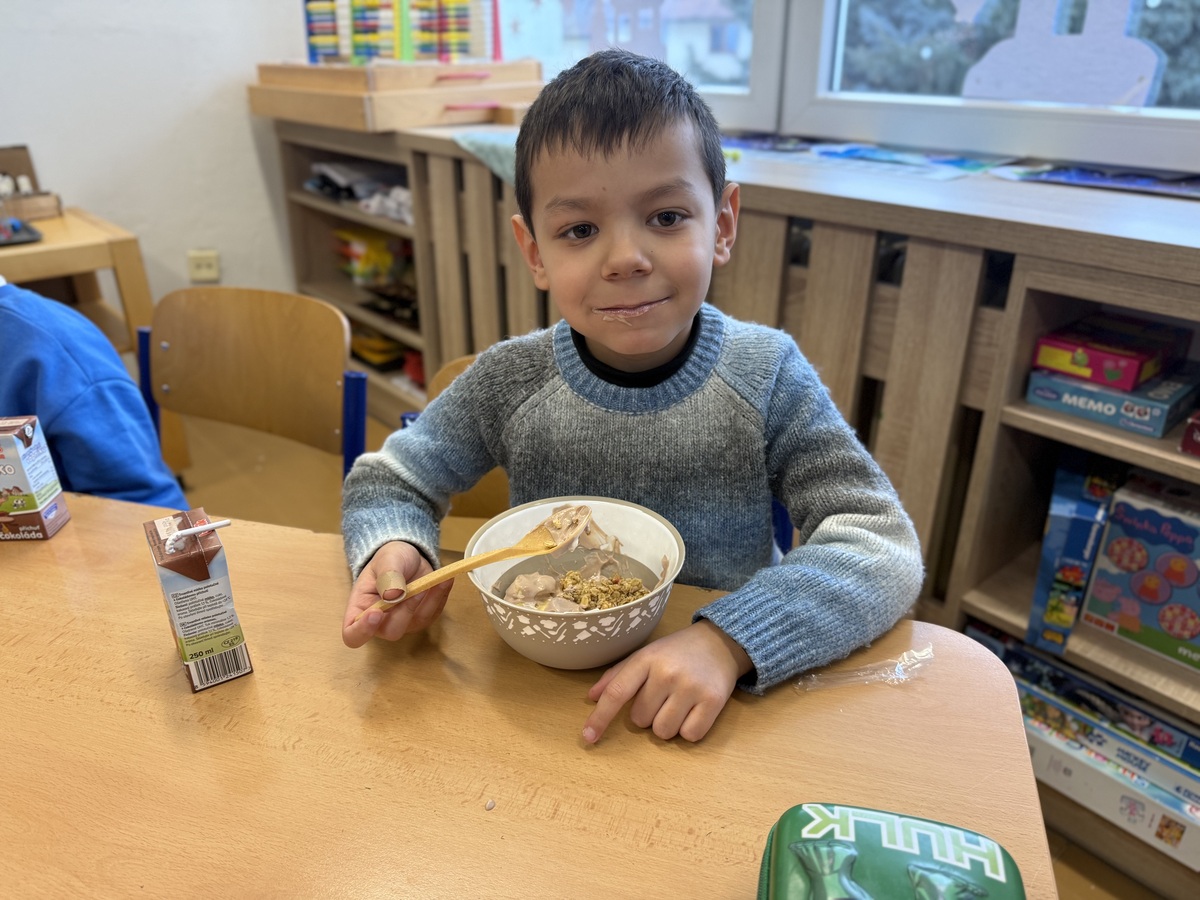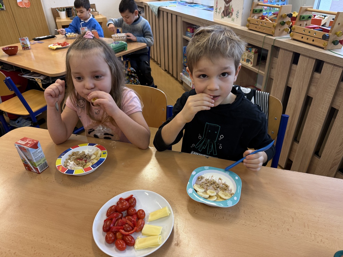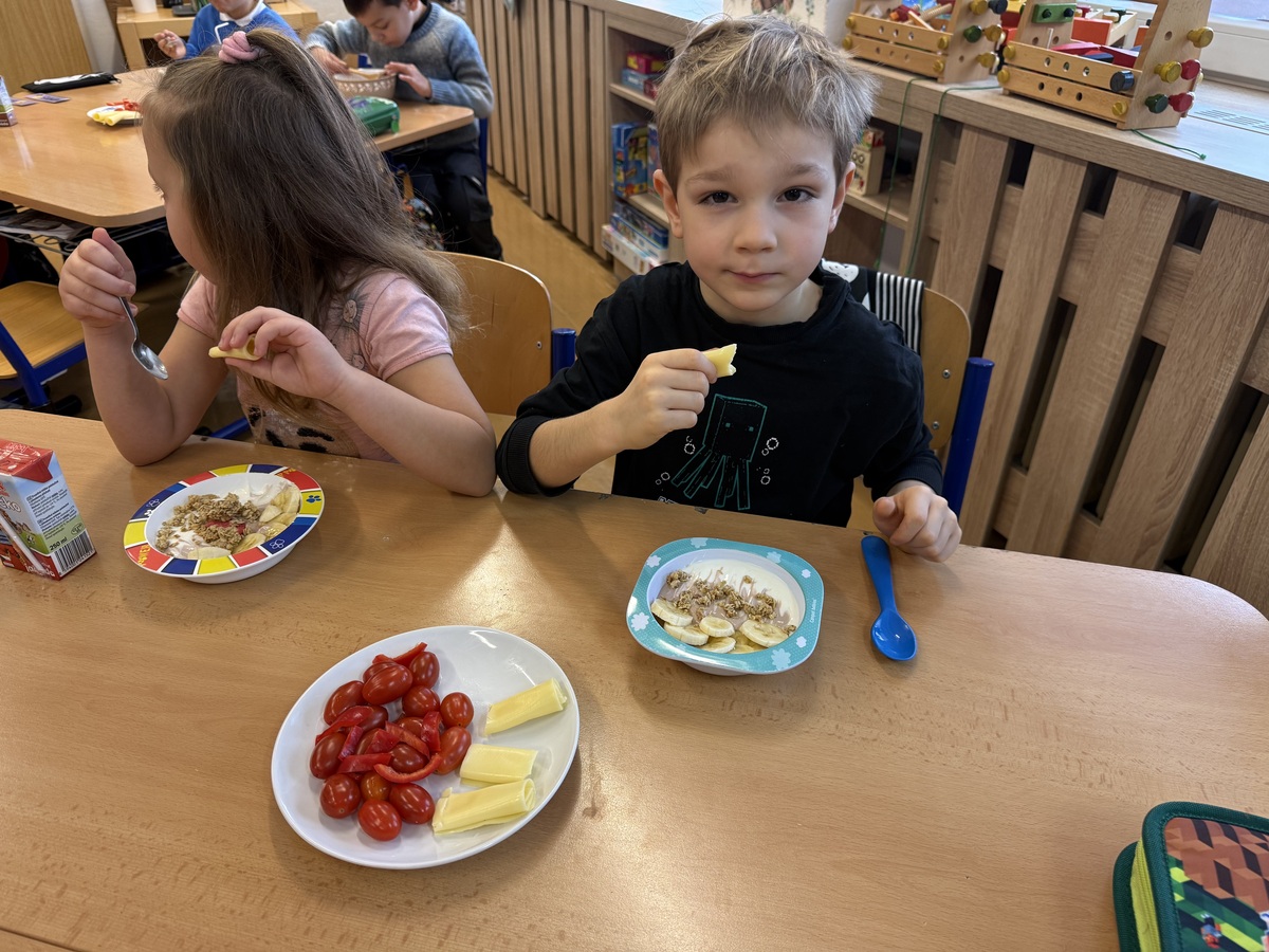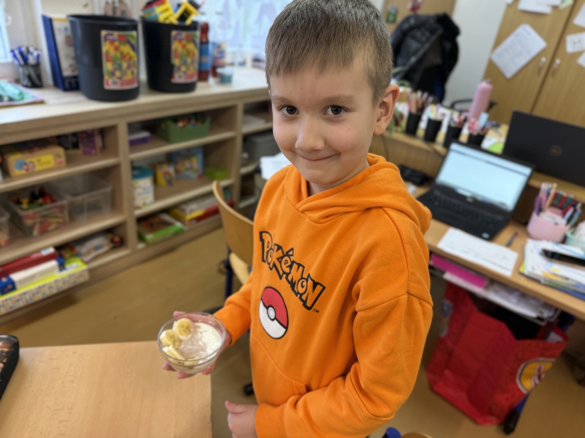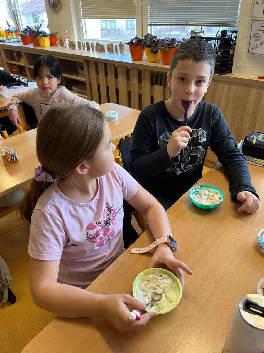 Každý učitel pojal ochutnávku po svém. Někde děti zkoušely mléčné výrobky „jen tak“, čisté a bez dochucení, jinde vznikla zdravá jogurtová snídaně – s ovocem, müsli nebo kapkou javorového sirupu. Nechyběla ani ochutnávka sýrů a povídání o tom, odkud mléčné výrobky pocházejí a proč jsou pro tělo důležité.