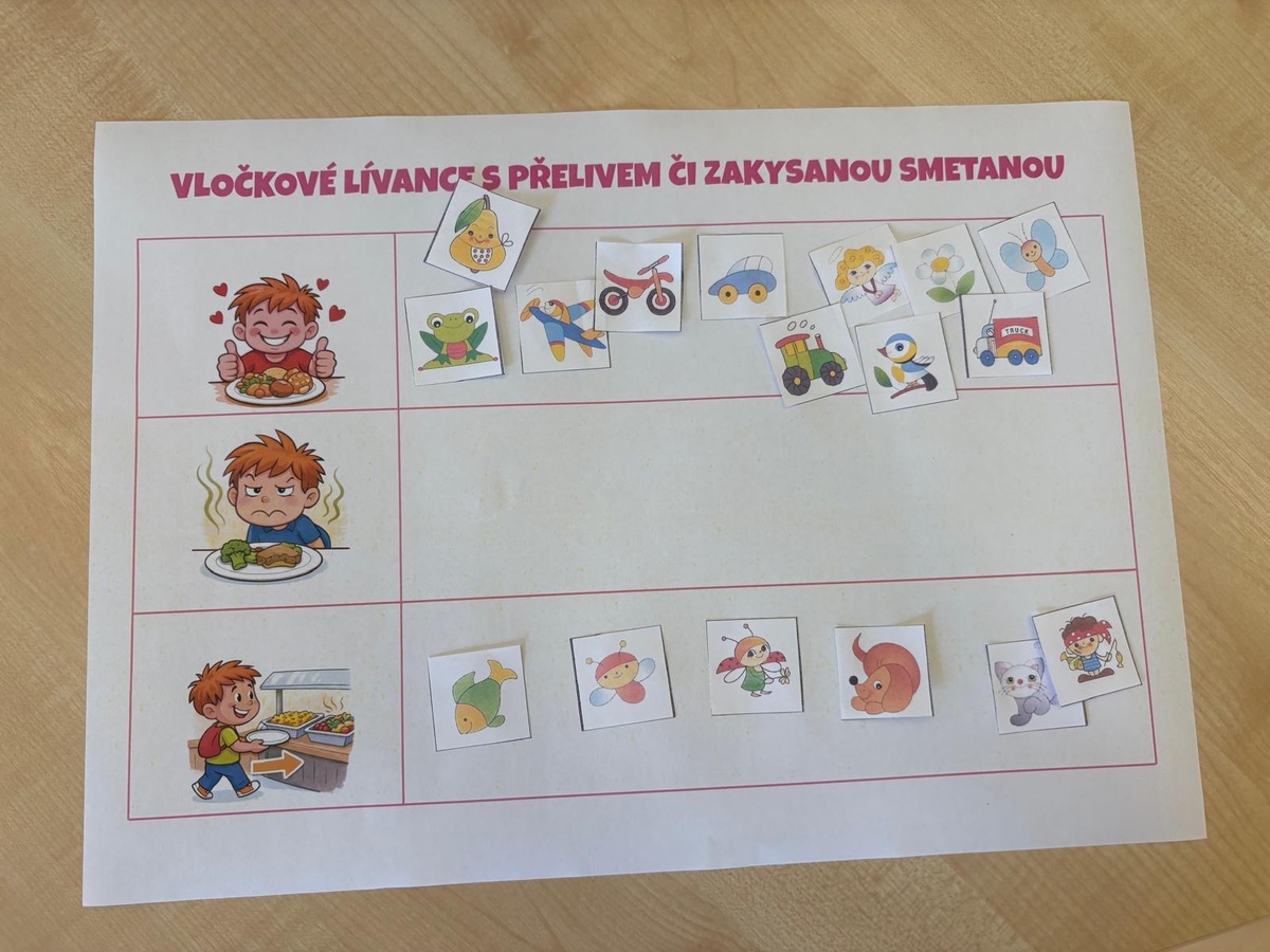 Záleží nám na názoru našich Smíšků. Pravidelně zařazujeme tento monitoring chuti, který je zpětnou vazbou pro paní kuchařku. Dnes je vidět, že dětem skutečně chutnalo a nejeden Smíšek si přidával.
