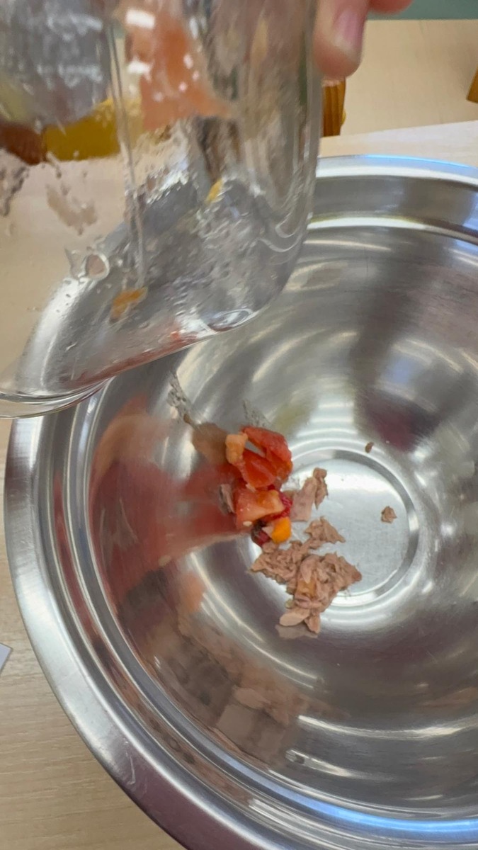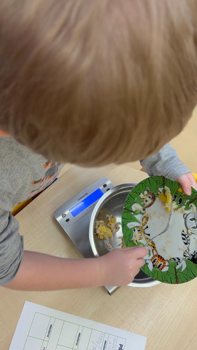 Dnes byl opět dnes plný očekávání a kontrolovaní s uvědoměním. Po celý dnešní den probíhal monitoring zbytků. Za nás vážení proběhlo s úspěchem i vzhledem složení jídelníčku. Zeleninová miska s tuňákem byla úspěšná i k našemu překvapení. Děti si uvědomují, že je důležité snížení plýtvání jídlem. V pátek nás čeká monitoring chuti.