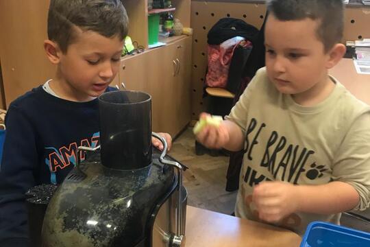 Jablečný týden v základní škole jsme ukončili nápojem plným vitamínů. Nejlépe chutná když si ho sami připravíte, a tak jsme si udělali mošt. Jablka jsme si nasbírali, děti je pokrájely a šup s nimi do odšťavňovače. Chuť byla báječná! Nikdo nechtěl věřit tomu, že takovou sladkou chuť udělá příroda sama. Zbytek jablek jsme rozmixovali a připravili si tak domácí jablíčkovou dřeň.