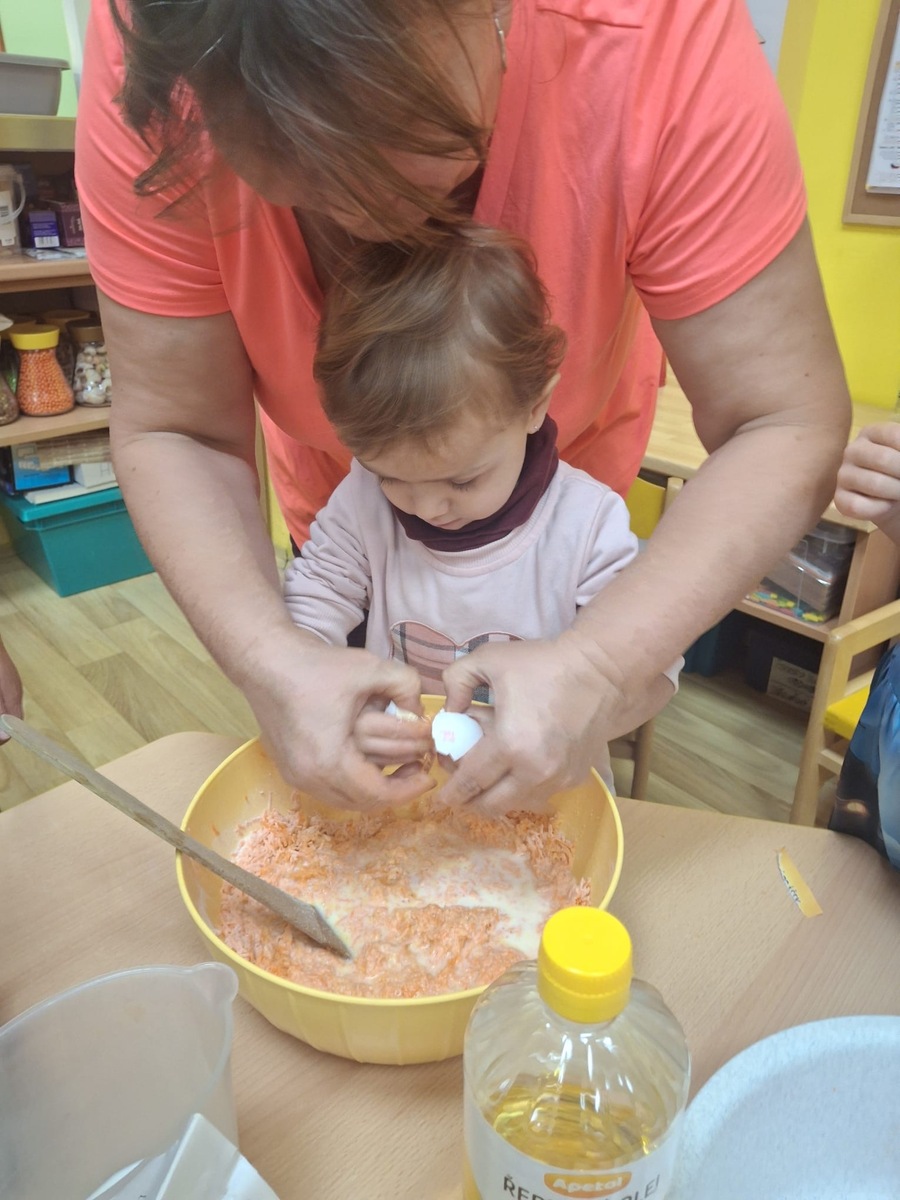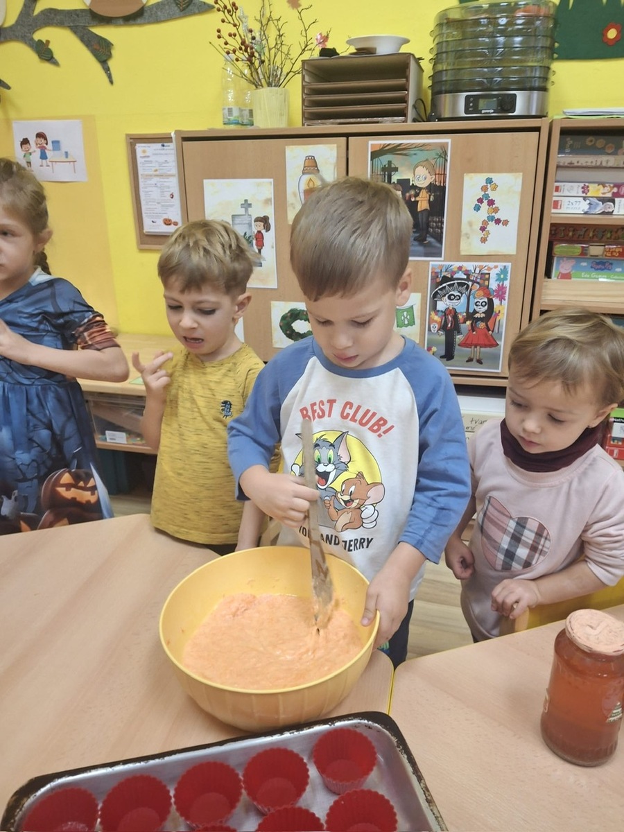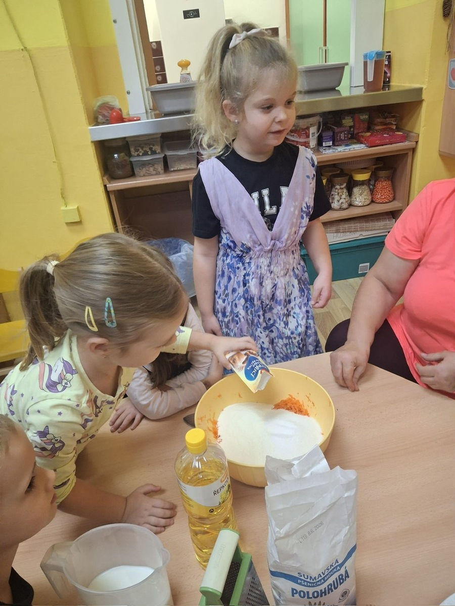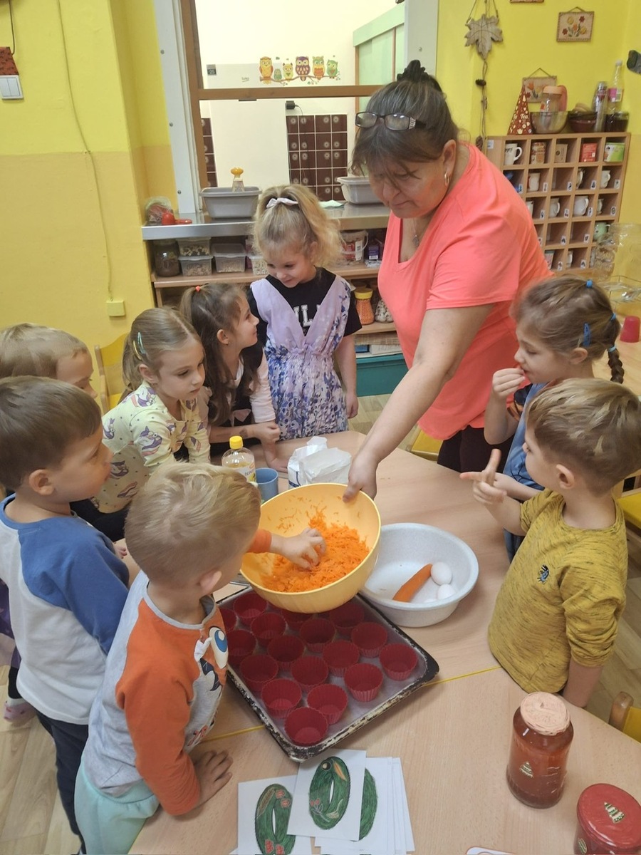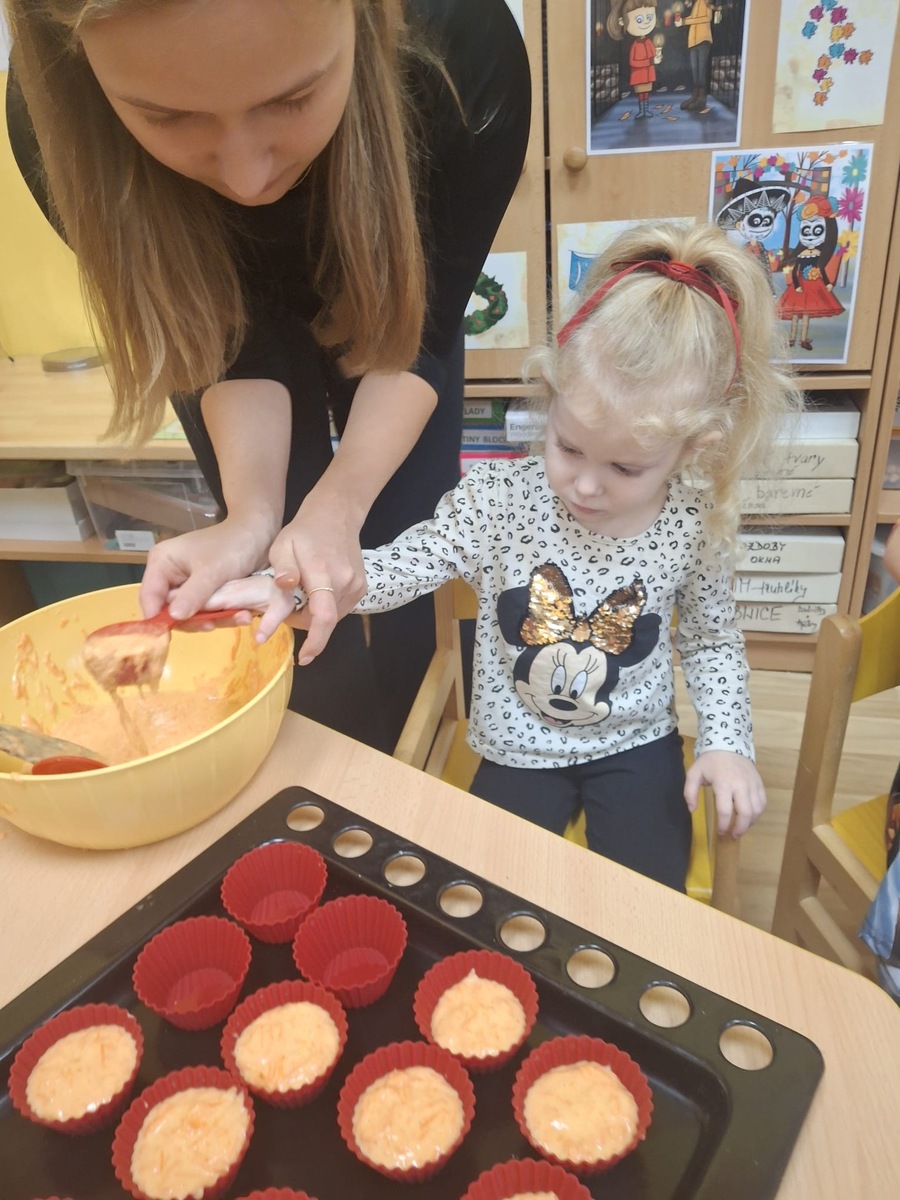 S dětmi jsme si upekly mrkvové muffiny. Děti si připravily všechny ingredience a pomůcky na pečení. Postupně přidávaly všechny ingredience do mísy. Poté jsme připravené těsto nalily do formiček a daly paní kuchařce péct do trouby. Nakonec jsme si je všechny ozdobily.
