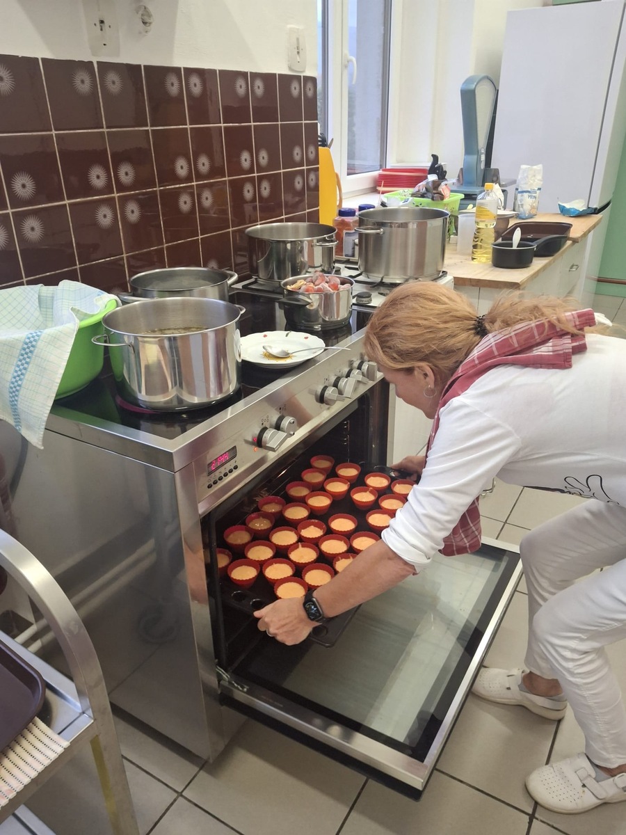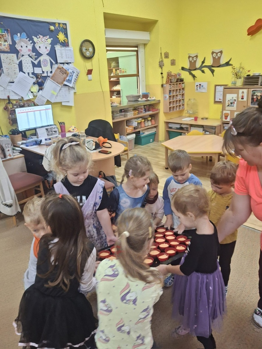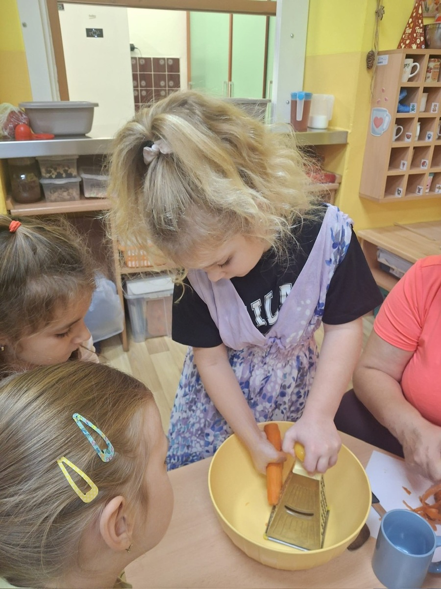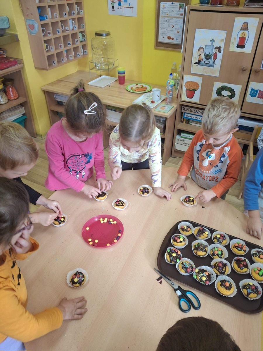S dětmi jsme si upekly mrkvové muffiny. Děti si připravily všechny ingredience a pomůcky na pečení. Postupně přidávaly všechny ingredience do mísy. Poté jsme připravené těsto nalily do formiček a daly paní kuchařce péct do trouby. Nakonec jsme si je všechny ozdobily.