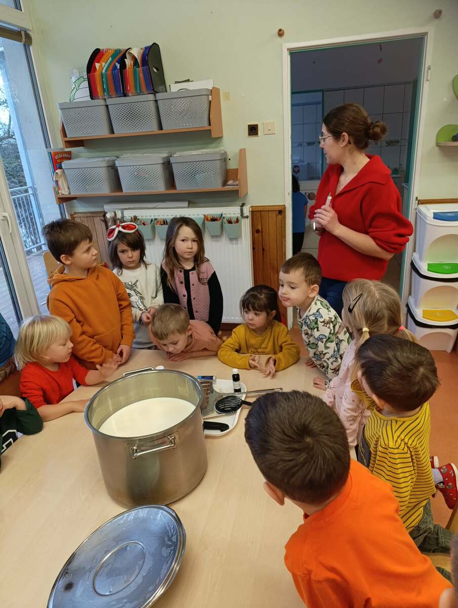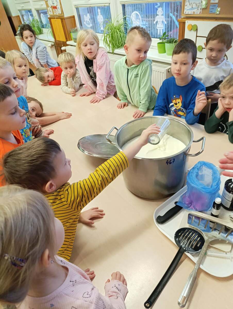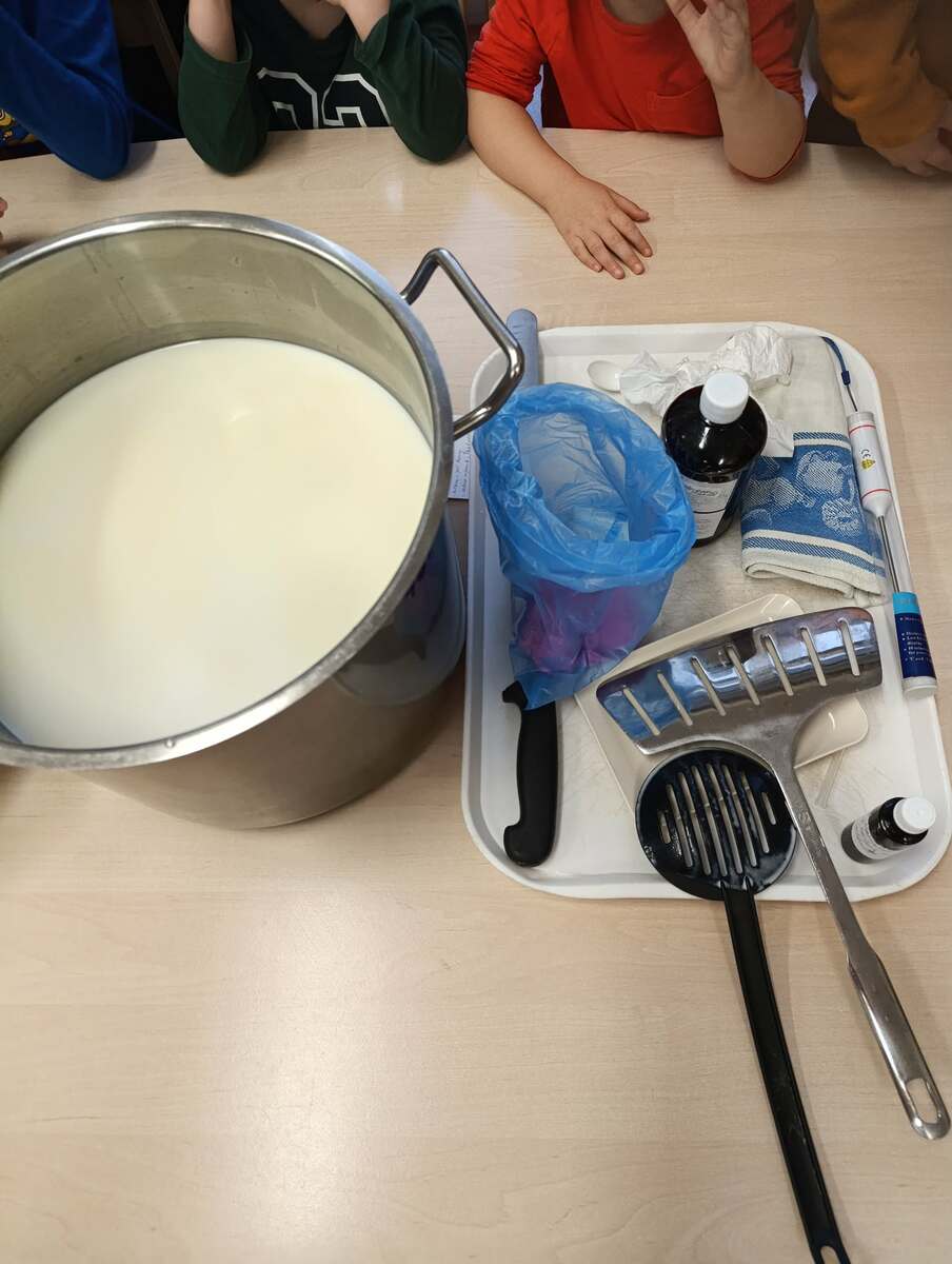 Projektový týden ,, Kdo vyrábí....,, dětičky z MŠ zakončily výrobou sýrů. V domácích podmínkách si zahřály mléko, přidaly kulturu, míchaly a krájely vzniklou hmotu. Potom naplnily připravené košíčky a už jen čekaly na výsledek. Hotový sýr obalily v koření a doma se pochlubily se svým rodičům.