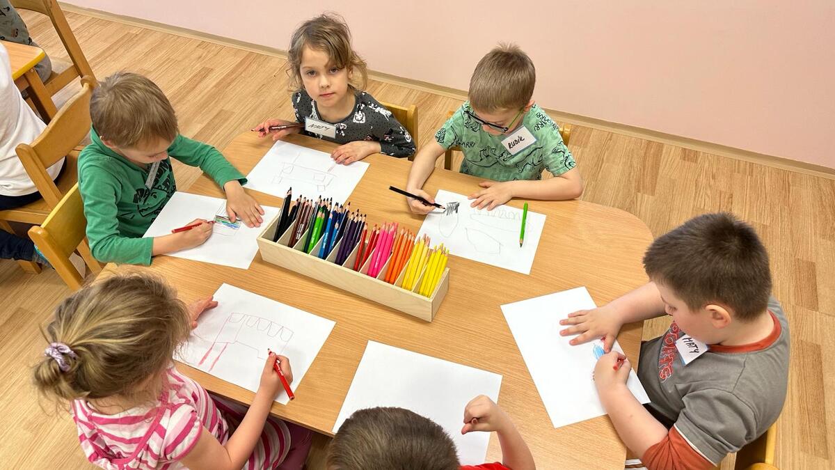 A posledním úkolem bylo kreslení do plánku domu. Děti si měly rozkreslit rozestavení nábytku, WC, vany, TV, sporáku atd.do papírového plánku jejich domu.