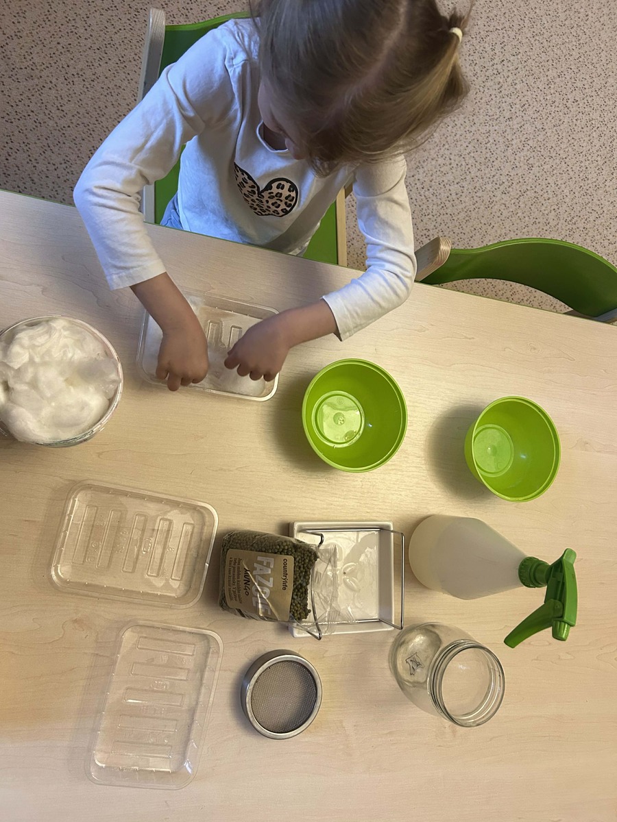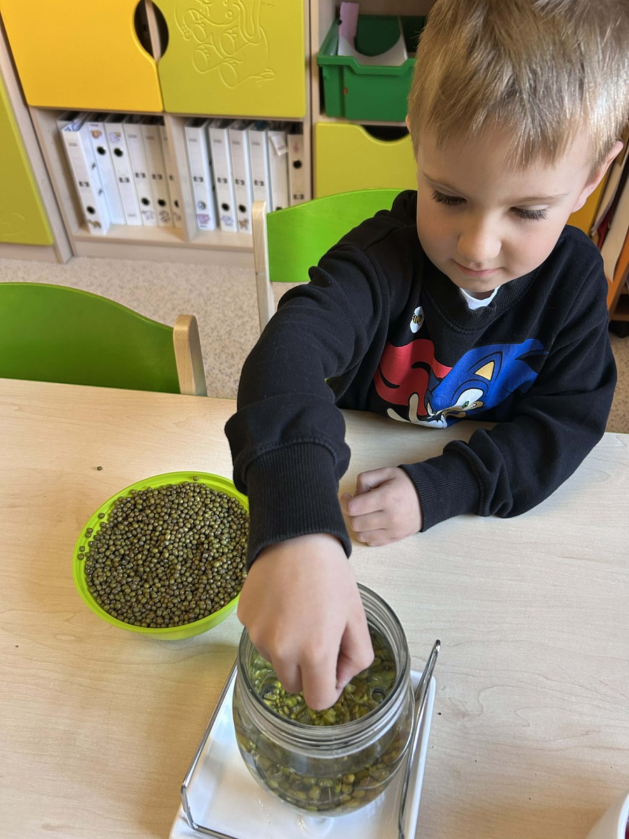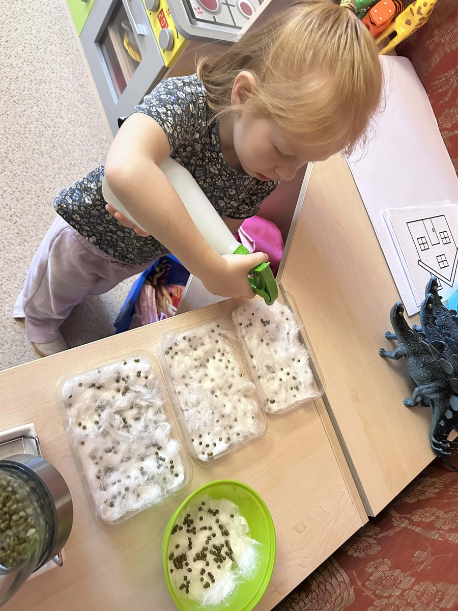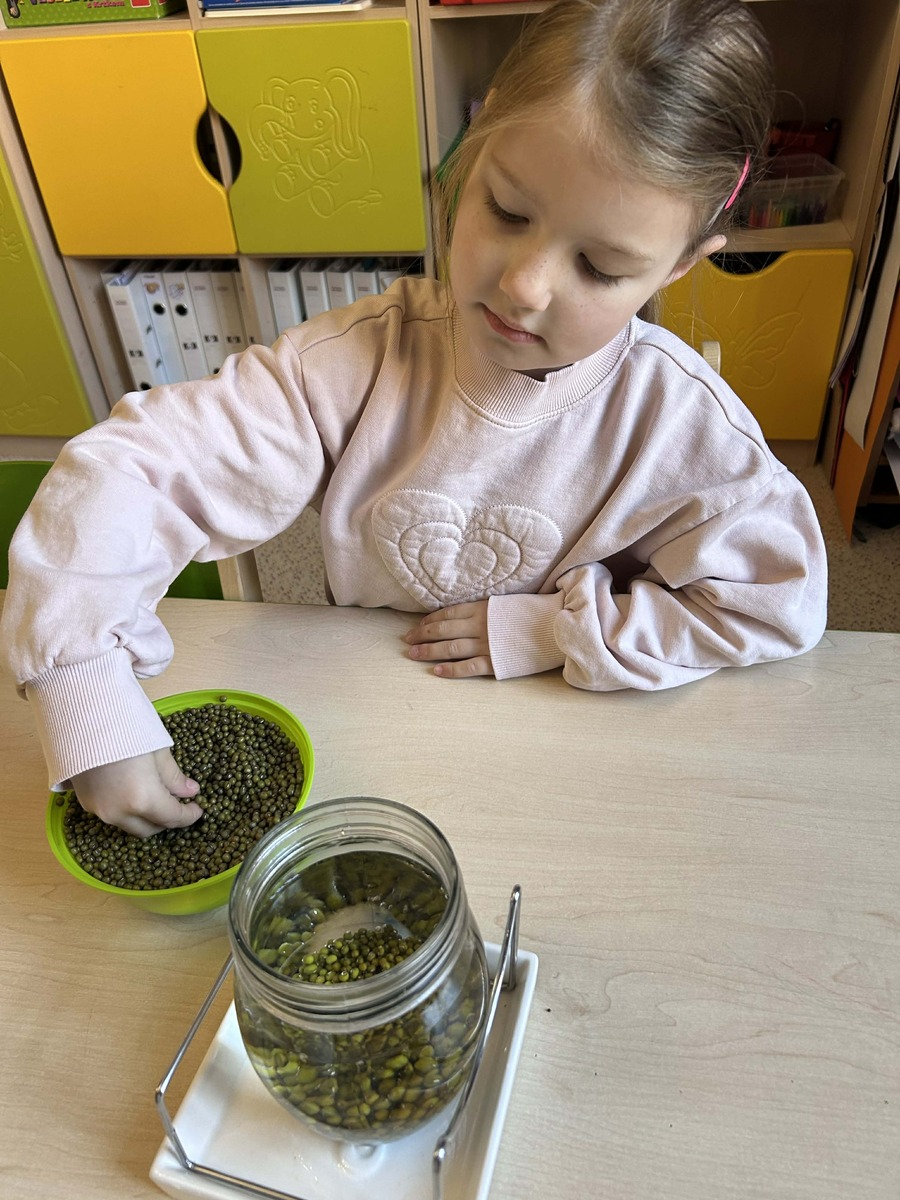 S dětmi jsme klíčily mungo fazolky. Každý den jsme je společně zalévaly a pozorovaly, jak postupně klíčí a rostou.