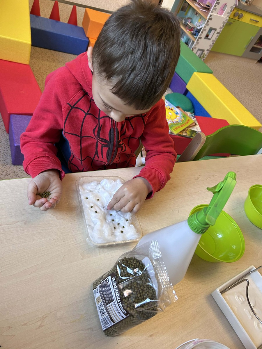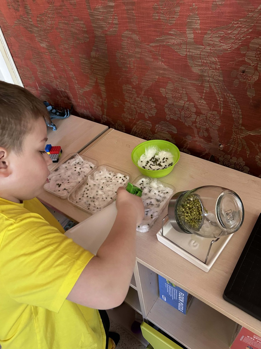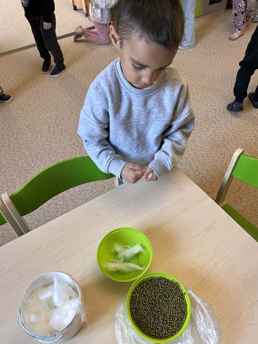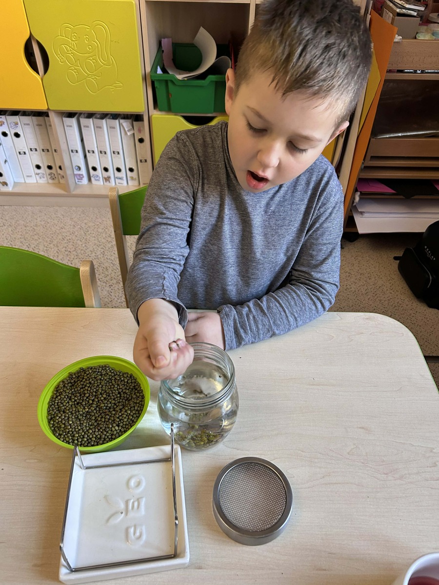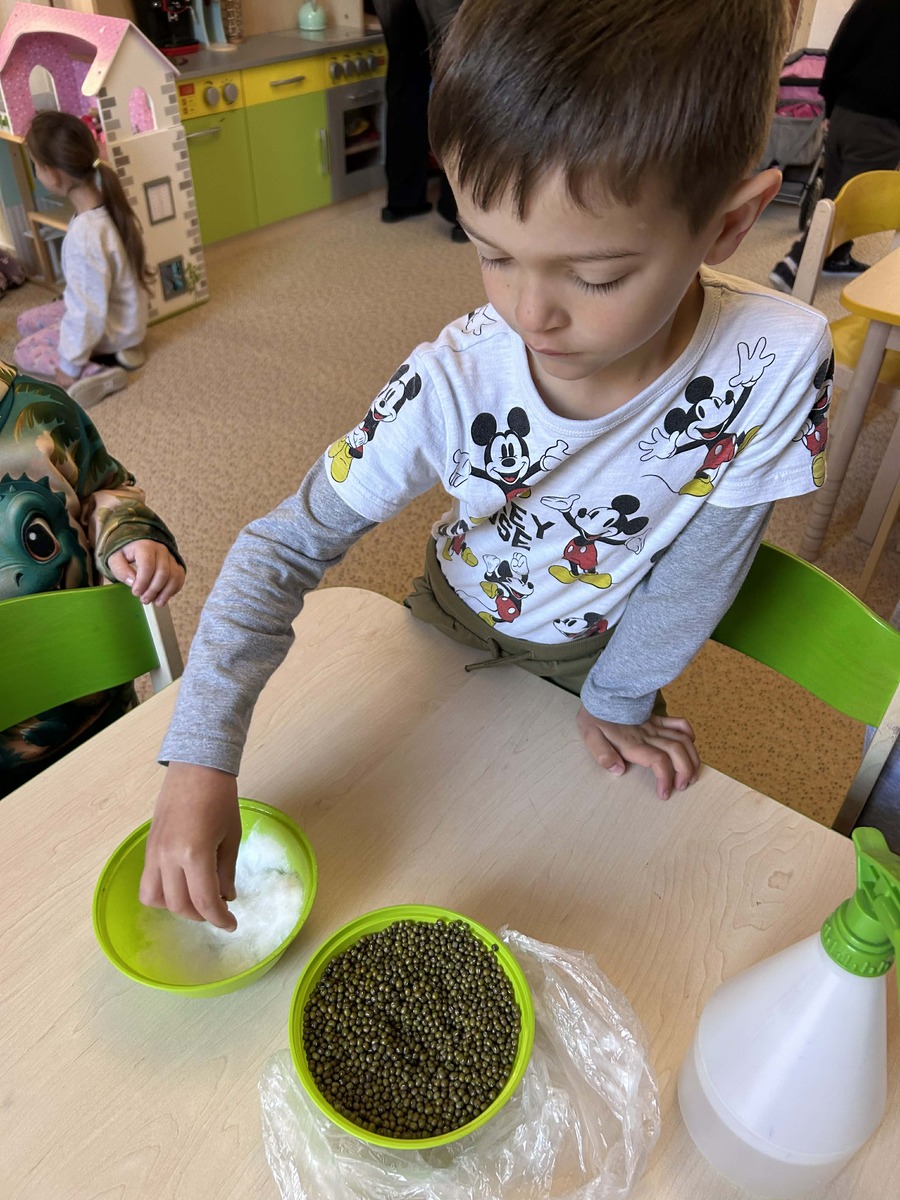 S dětmi jsme klíčily mungo fazolky. Každý den jsme je společně zalévaly a pozorovaly, jak postupně klíčí a rostou.