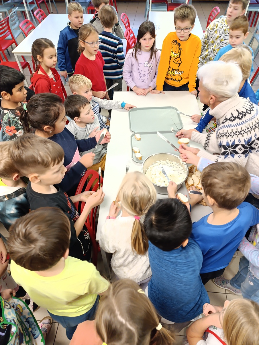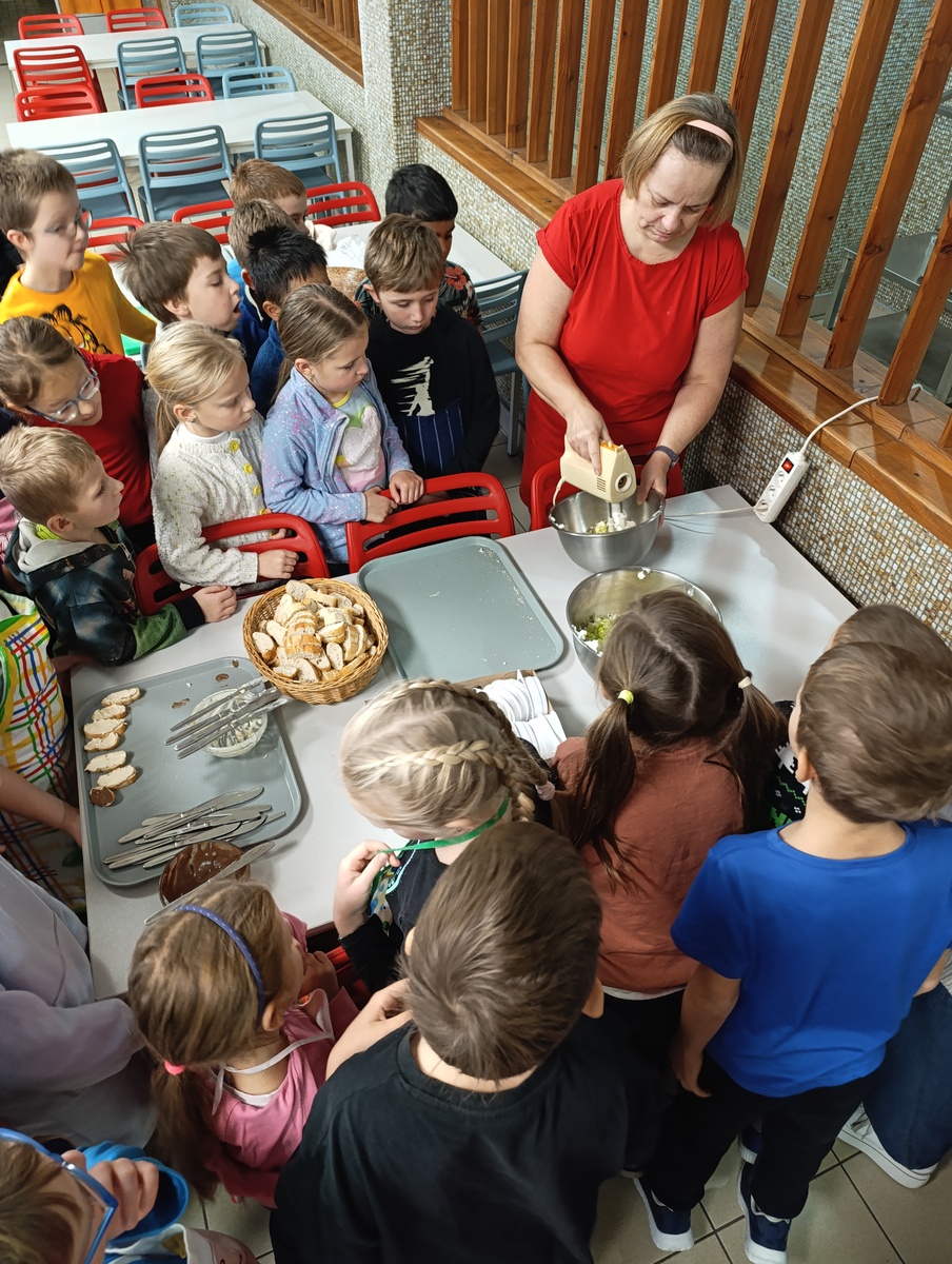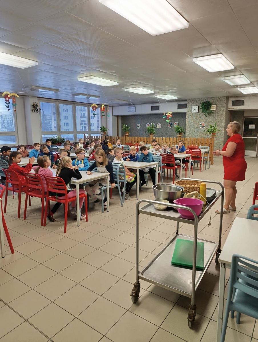 V naší školní jídelně je občas živo i mimo dobu obědů. Vedoucí jídelny nabídla vyučujícím a jejich třídám exkurzi do školní jídelny, aby si naši žáci udělali představu o přípravě obědů, o vybavení kuchyně, o množství surovin, které se spotřebují na uvaření oběda, organizaci práce a o náročnosti povolání kuchaře. Tentokrát školní kuchyň navštívili naši druháčci. Součástí exkurze byla i příprava jednoduché zdravé svačinky. Jak vidíte, návštěva se vydařila, děti byly nadšené a už vědí, jak se ten výborný oběd dostane na jejich talíře.