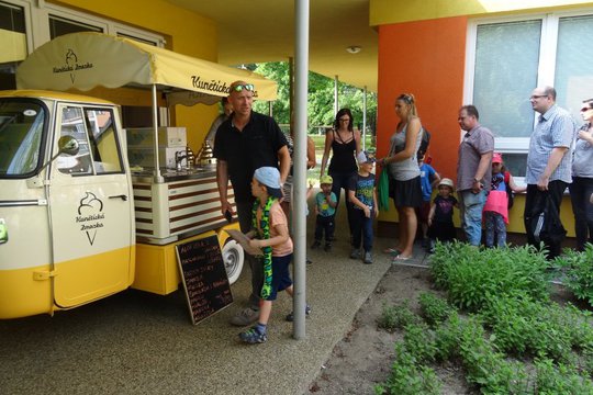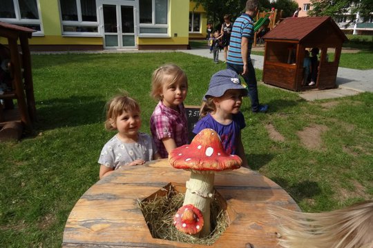 Může. Se vším, co na farmu patří. S bylinkami, se zvířátky, se slámou… Kráva byla skoro jako živá, i podojit se mohla. V butelce sice byla místo mléka voda, ale nikomu to nevadilo. Společnost jí dělal koník jako živý a tří čuníci. Děti hledaly ve slámě kolem zvířat vajíčka a nosily je do košíků. Jinde poznávaly po čichu různá koření. Dařilo se jim to velmi dobře, majoránku, česnek, levanduli i pažitku dokázaly určit bez zaváhání. Podle vzhledu pak určovaly rajče, tymián, petržel i další rostliny. I tady byly úspěšné. V jiném koutku zahrady si mohly vyrobit jednoduchá drátěný šperk nebo zaskákat na velkém zajíci a přelézt vysoké štafle. A komu by chyběly náročnější úkoly, mohl zkusit křížovku s dřevěnými písmeny a „hospodářskou“ tajenkou. Děti se s pomocí rodičů zapojily do všech činností na sedmi stanovištích, která pro školku již poněkolikáté připravil Park Tři věže z Líšnice u Prahy. Dobrou náladu podpořila i výborná kunětická zmrzlina a malé „zdravé“ občerstvení ze školní kuchyně. V teplém odpoledni si děti užívaly i ostatní hrací prvky na naší zahradě, hlavně vodníka s jeho korýtky a stavidly a velké průlezky. Zahrada nabídla dětem i jejich rodičům příjemné odpoledne, poslední návštěvníci ji neradi opouštěli až v pozdním odpoledni. Na konci června čeká rodiče a děti ještě jedna velká zahradní slavnost, abychom si před prázdninami pěkné společné odpoledne zopakovali.