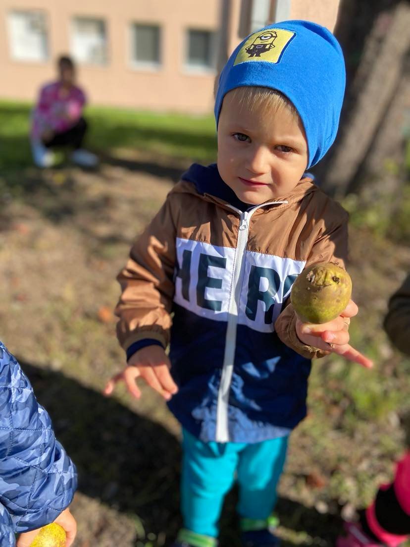 Včera jsme měli krásné dopoledne, nejprve jsme si s pomocí paní učitelek načesali hruštičky, pak jsme je ochutnali a odnesli paní kuchařkám, ty nám z nich přes noc vykouzlily výbornou přesnídávku. A představte si, také se o hruškách učíme básničku, určitě jí také znáte: Foukej, foukej větříčku, shoď mi jednu hruštičku, shoď mi jednu nebo dvě, budou sladké obě dvě.