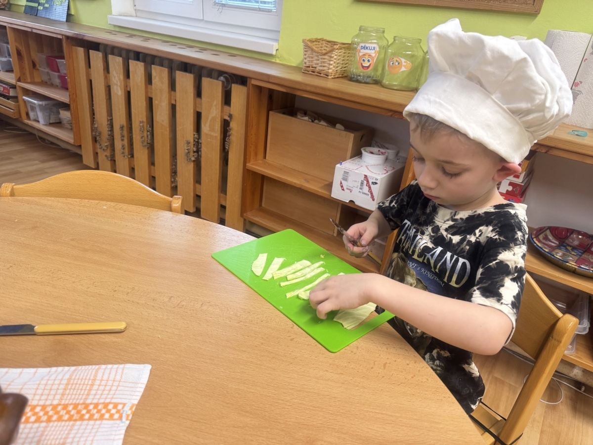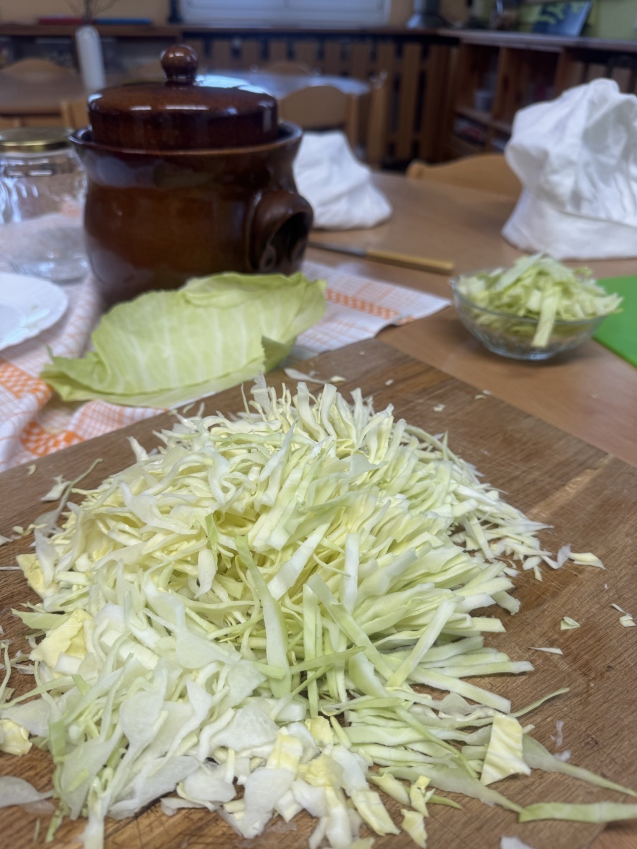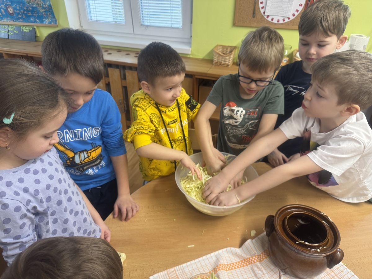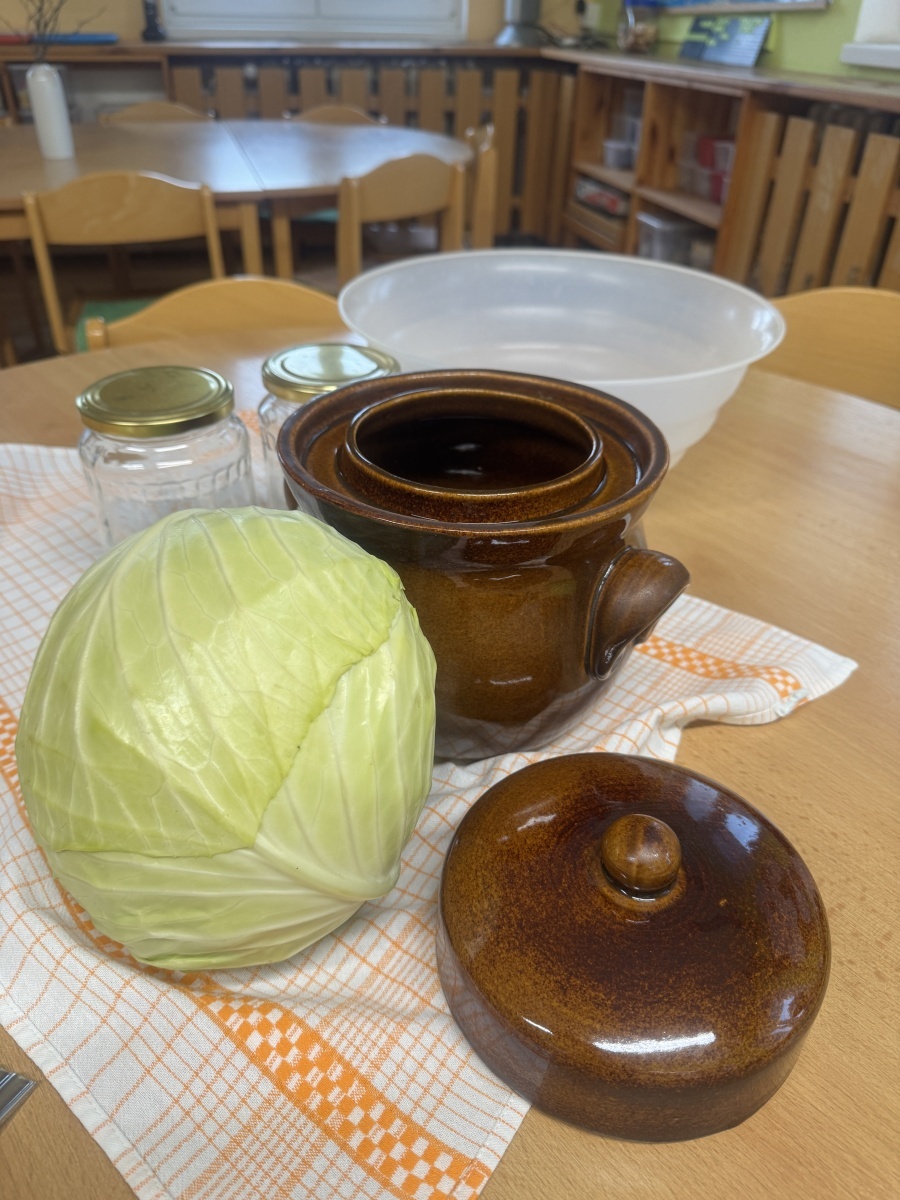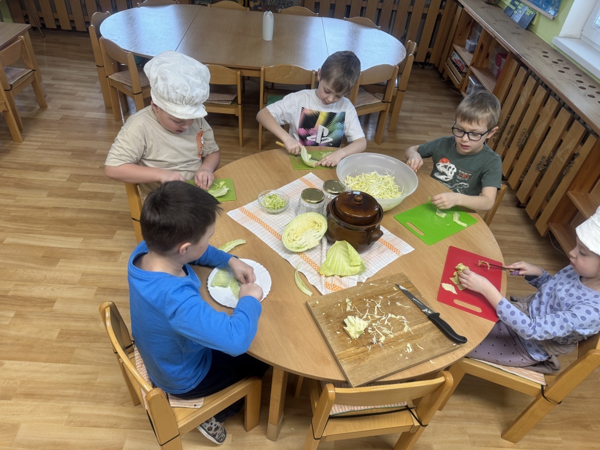 V naší školce jíme zdravě, protože víme, jak je to pro naše tělo důležité. Dneska hrály děti námětovou hru Na kuchaře a vytvořily si přírodní zdroj vitaminu C v podobě nakládaného zelí. Krájení, nakládání a pozorování procesu kvašení je pro děti obrovským prožitkem. A na první ochutnávku se už všichni těšíme.