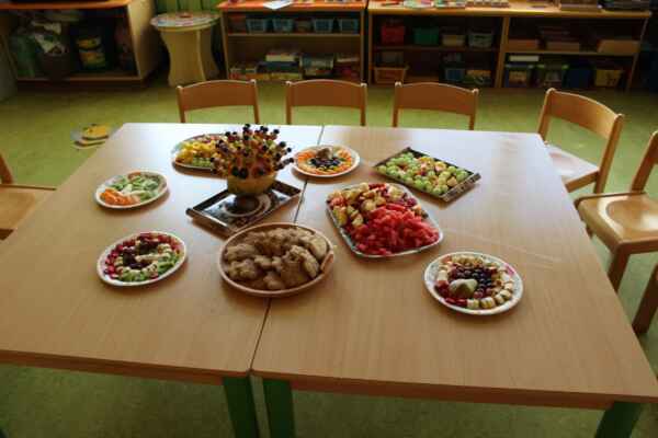 Jak tedy na to? V rámci narozeninového rituálu rodiče s dětmi donesou pár kousků ovoce a my si společně ve třídě vše připravíme na narozeninovou hostinu. Děti ovoce nakrájí a nazdobí na tácy a jsou tak součástí tohoto přípravného procesu. Je to takový narozeninový ovocný piknik. Tento den si vždy náramně užijeme a děti mají obrovskou radost, že se podílejí na chystání. Druhá varianta je, že někteří rodiče s dětmi projeví svoji kreativitu a společně připraví ovoce v podobě zvířátek či obrázků doma a přinesou hotový výtvor z domu. Pak je to čas, který spolu stráví v rodině, ten se taky v dnešní době cení:)
