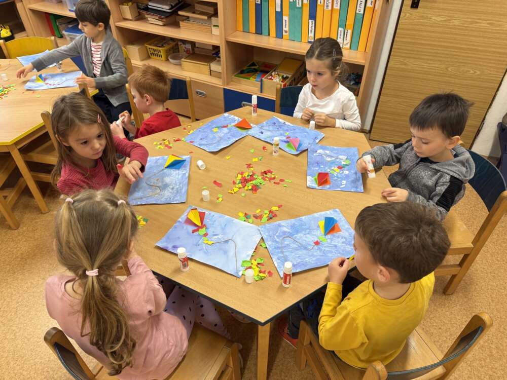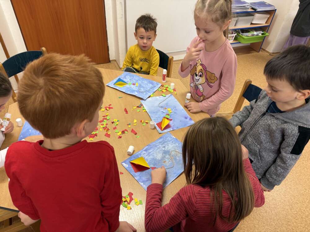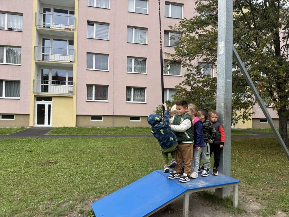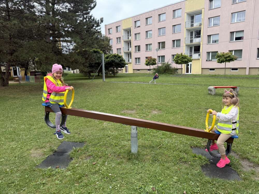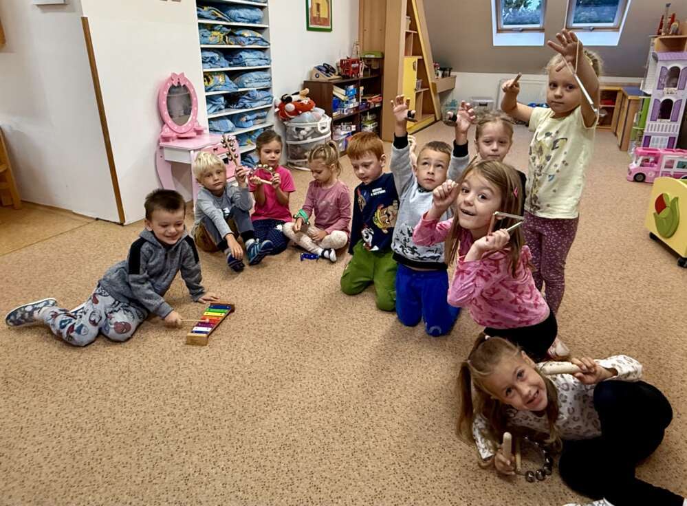 Dopoledne si děti vyzkoušely novou techniku malby, zahrály si na nástroje a pak už hurá na hřiště ????????