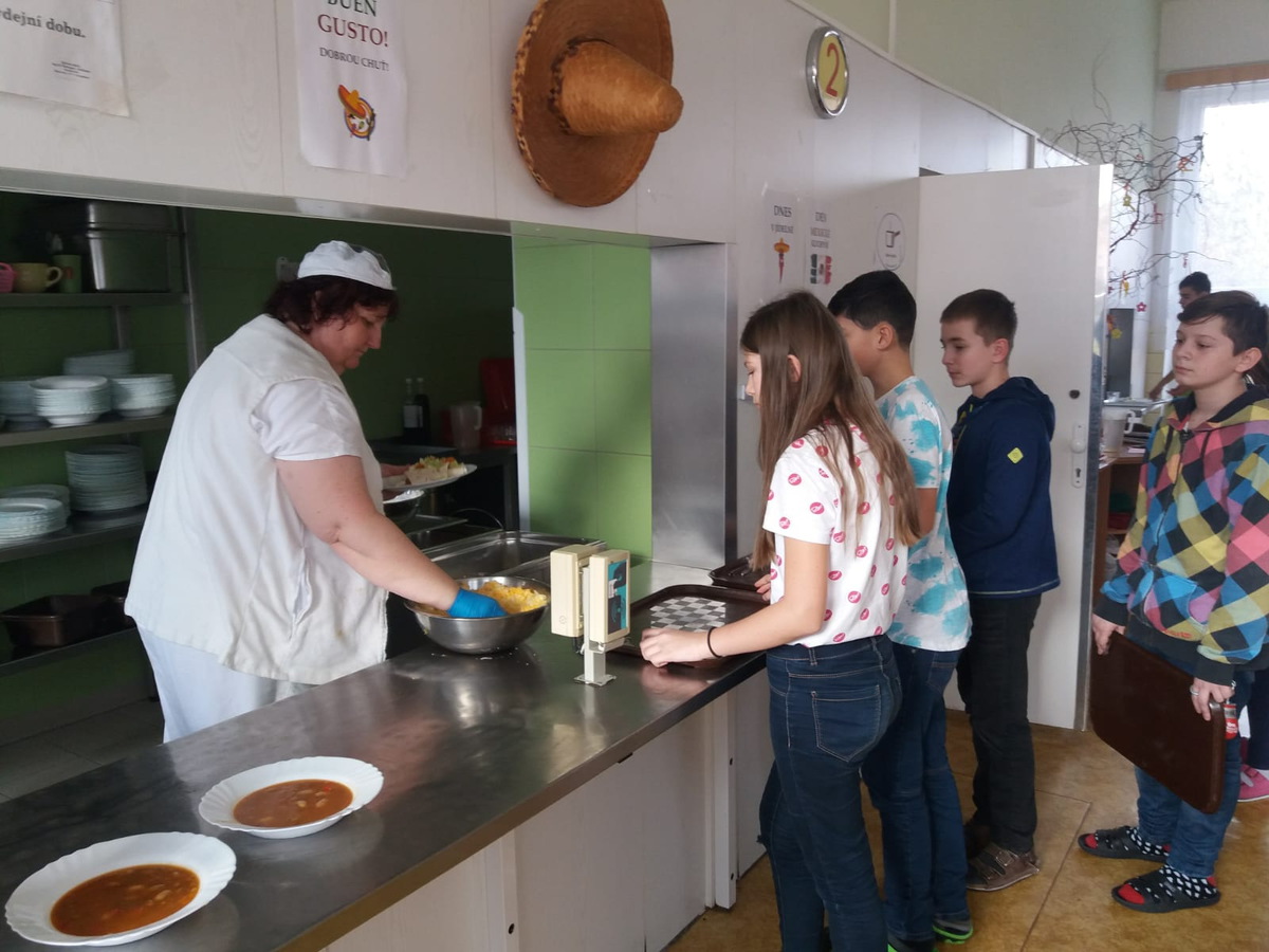 Od září u nás proběhly Dny slovenské, čínské, mexické, indické a italské kuchyně. Ve slovenský den nám pan ředitel vyhrával do školního rozhlasu známé písně slovenských kapel. Čínský den nám krásně vyzdobil druhý stupeň v rámci výtvarné výchovy kresbou bambusů s pandami. O italském dni se paní kuchyřky nezastavily - pekly jednu pizzu za druhou. V mexický den nechybělo na zdi zavěšené mexické sombrero. Tyto dny baví nejen naše paní kuchařky, protože si připraví nová a zajímavá jídla, ale také děti, které učíme hravou formou k pozitivnímu přístupu při ochutnávání nových a nevšechních pokrmů. Pozitivní zpětná vazba dětí a snížení množství zbytků na talířích je skvělou zpětnou vazbou pro paní kuchyřky, že svou práci dělají dobře a s radostí.