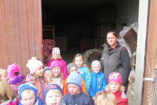Mimochodem, věděli jste, že brambory mají jména? Ne? Tak my už to víme! Na statku pěstují brambory Adélky a Laury. A na těch bramborách si pochutnáváme u nás ve školce. V místní prodejně jsme koupili tvaroh a jogurt. Děti přijely plné zážitků, malovaly, co viděly. A když máme k obědu brambory, ptají se paní kuchařky, jestli máme dnes Adélky nebo Laury. A když máme mlíčko, vzpomínáme na Kristýnku.