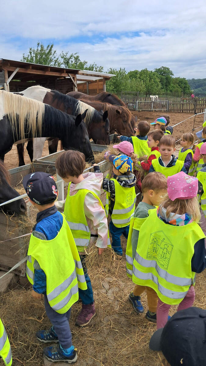 Před prázdninami se všechny děti z naší školky vydaly na farmu U tří koníků,kde se jim moc líbilo. Mohly si zvířátka pohladit, pomáhaly s krmením a dozvěděly se mnoho zajímavostí .Už se těší na další návštěvu.