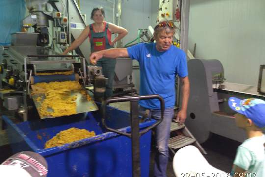 Nejprve si děti prošly výrobnu, kde šťávy vznikají, viděly postup, jak se ovoce přes velký stroj mění v zdravou šťávičku. Dále nahlídly do chladírny, kde ovoce čeká v bedýnkách na své další zpracování. Nakonec si děti prohlédly a i prošly velkými sady, kde rostou suroviny, jako jsou jablka, rybíz, borůvky a další.