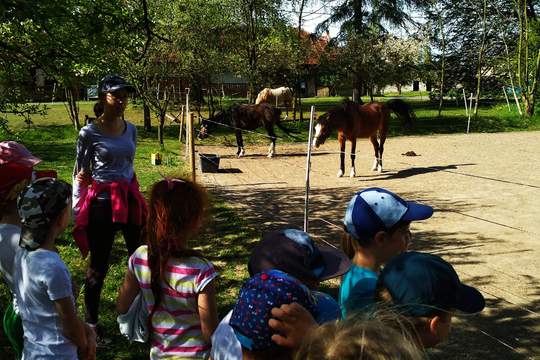 Děti se na statku seznámily se zvířátky, které lze nalézt na statku nebo na dvoře u babičky. Mohly obdivovat koně a poníky, pohladily si ovečky a kozy, pomazlily se s králíčky.
