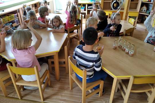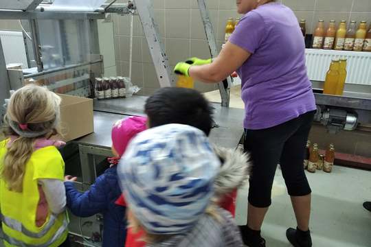 Dětem se líbila exkurze do moštárny, kde shlédly jeho výrobu. Jablíčkový mošt jim moc chutnal a také měly radost z pastelek, které dostaly.