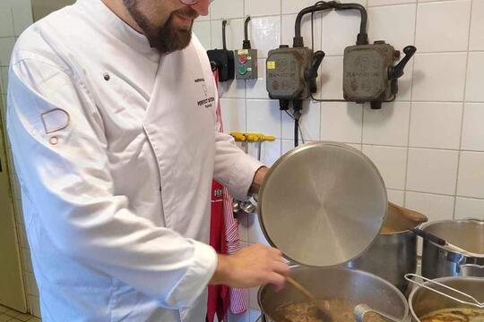 S Martinem si naše paní kuchařka užila kuchtící dopoledne. Získala od něj nové zkušenosti, spoustu zajímavých receptů a také velkou pochvalu za to, jak svoji práci odvádí. Prý je krásné potkat někoho, kdo práci dělá srdcem. Moc se mu v naší retro kuchyni líbilo.