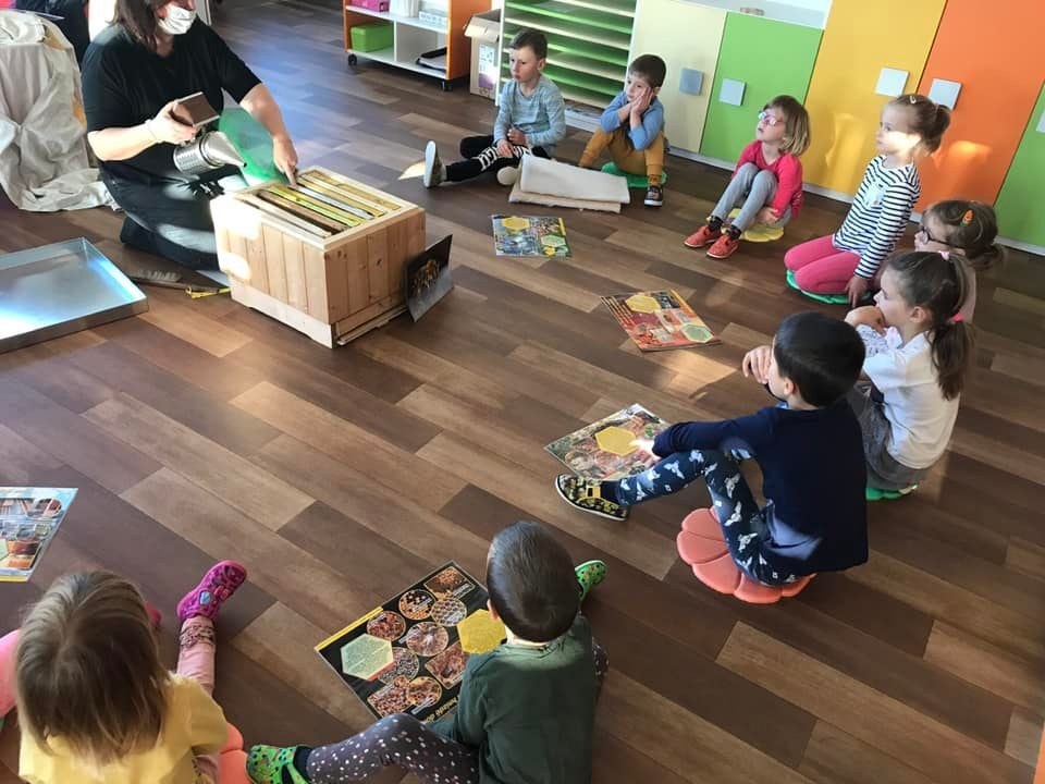 V říjnu nás navštívila paní včelařka, která nám krásně vysvětlila, co všechno se děje v úlu a kolik práce včeličky mají. Děkujeme :)
