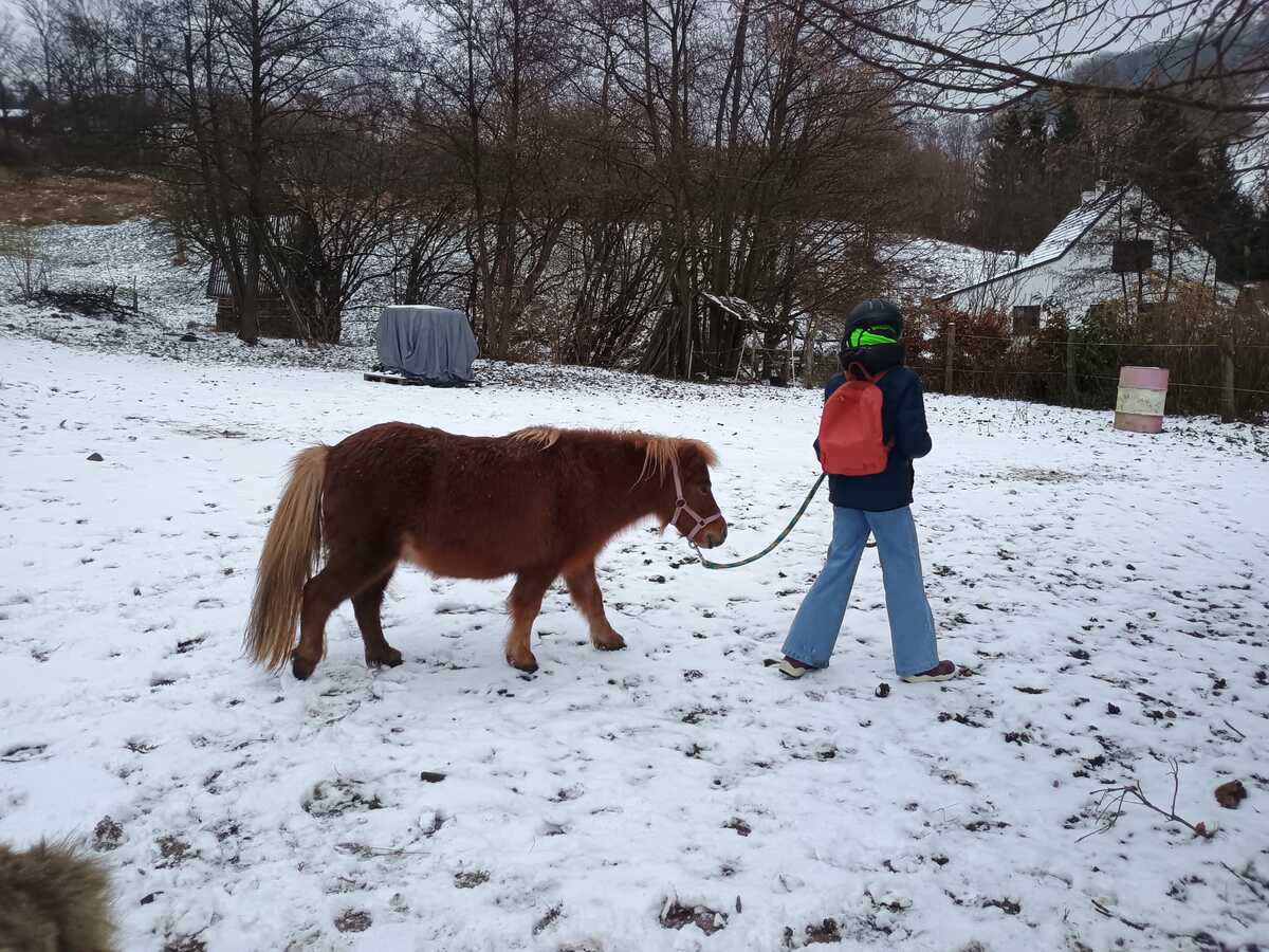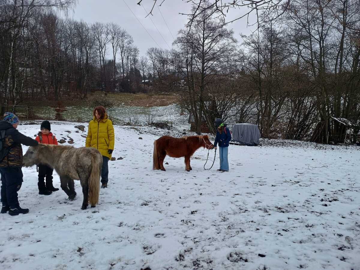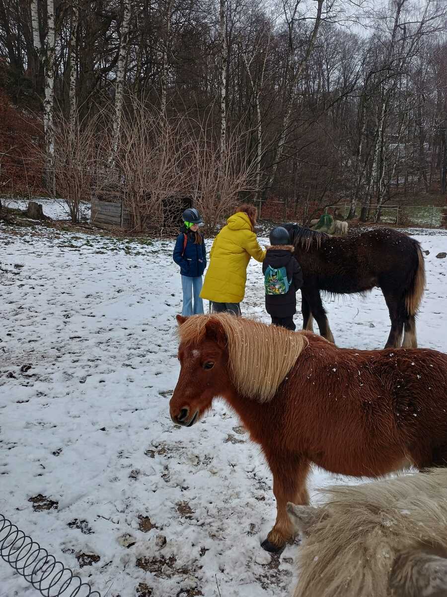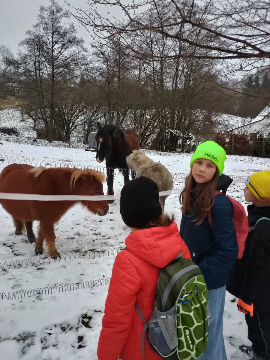 S dětmi z „Turisťáku“ jsme se opět vypravili na návštěvu zvířátek. Tentokrát nás vřele přivítala majitelka usedlosti v Lísce p. M. Pospíšilová. Zde to mají trochu jinak. Chovají se zde poníci ke kontaktní terapii. Ve výběhu na nás čekali tři certifikovaní poníci a nově hříbě Irského coba. Terapie zde navštěvují rodiče s dětmi, ale je vhodná i pro seniory a vlastně všechny, které uklidní a navodí příjemné pocity dotek zvířete. Zvířata jsou opravdu velmi milá, přítulná a dobře vychovaná.
