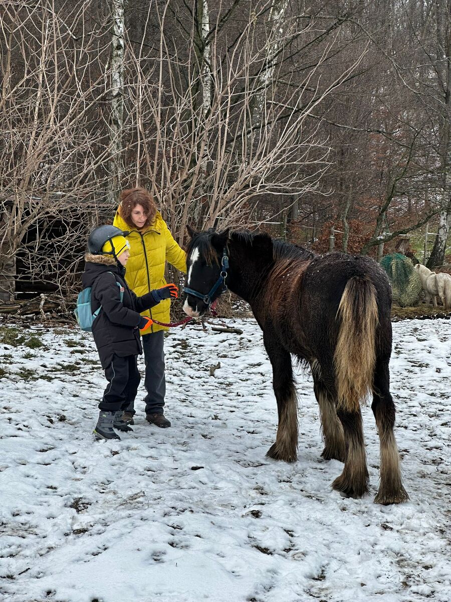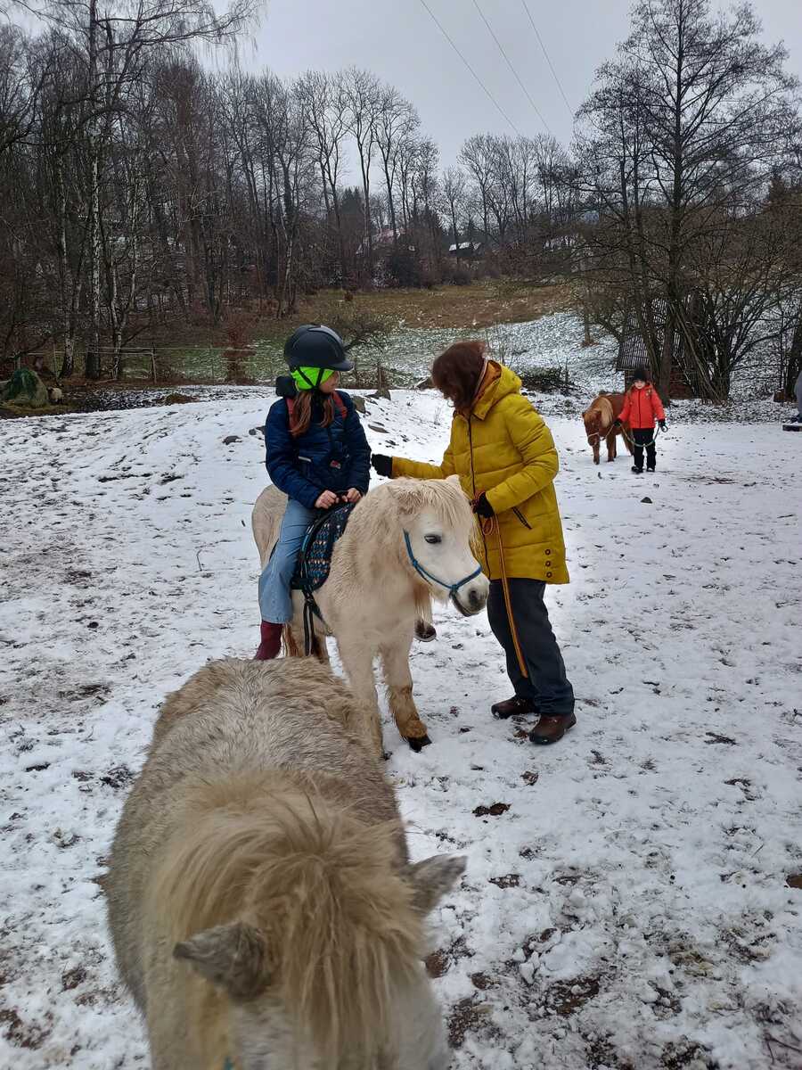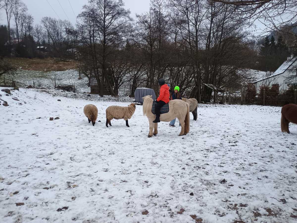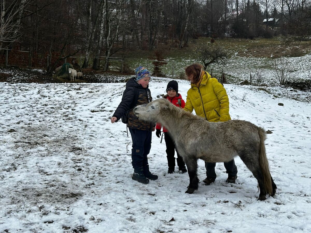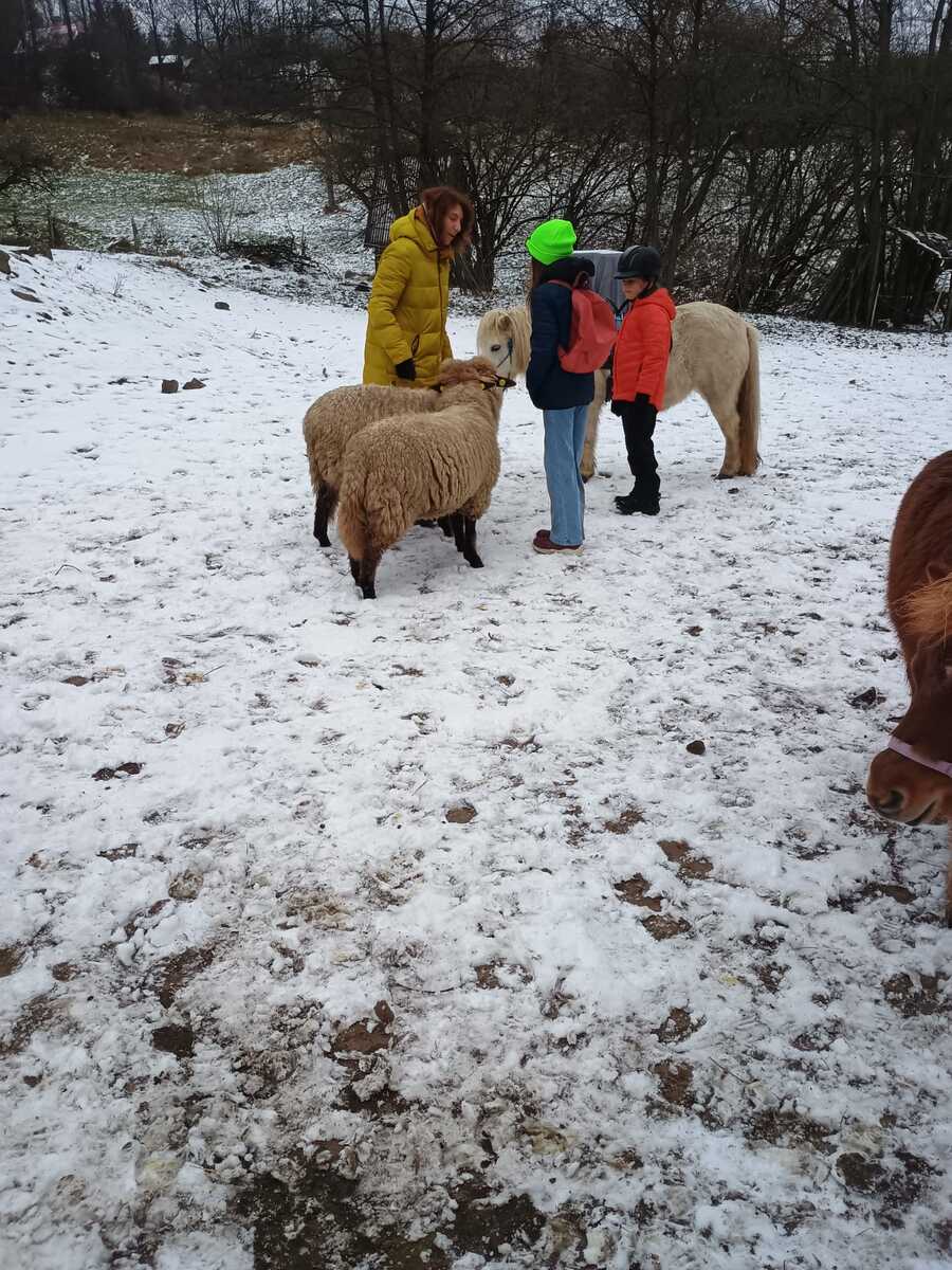 S dětmi z „Turisťáku“ jsme se opět vypravili na návštěvu zvířátek. Tentokrát nás vřele přivítala majitelka usedlosti v Lísce p. M. Pospíšilová. Zde to mají trochu jinak. Chovají se zde poníci ke kontaktní terapii. Ve výběhu na nás čekali tři certifikovaní poníci a nově hříbě Irského coba. Terapie zde navštěvují rodiče s dětmi, ale je vhodná i pro seniory a vlastně všechny, které uklidní a navodí příjemné pocity dotek zvířete. Zvířata jsou opravdu velmi milá, přítulná a dobře vychovaná.