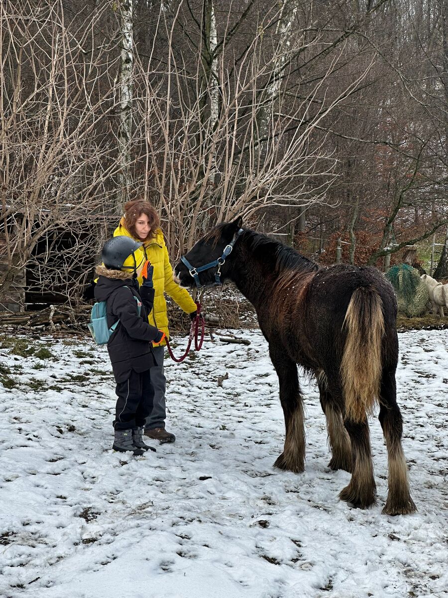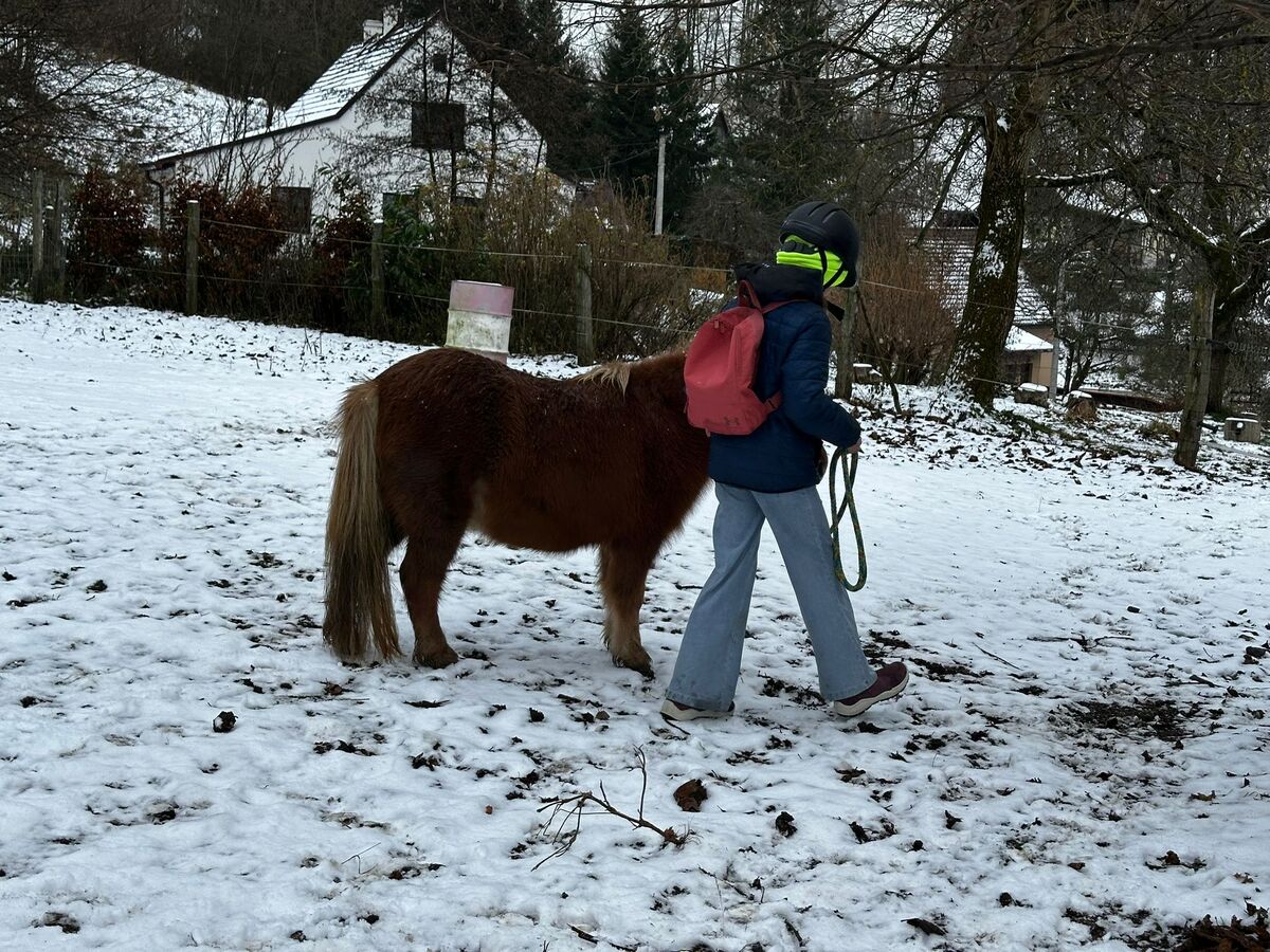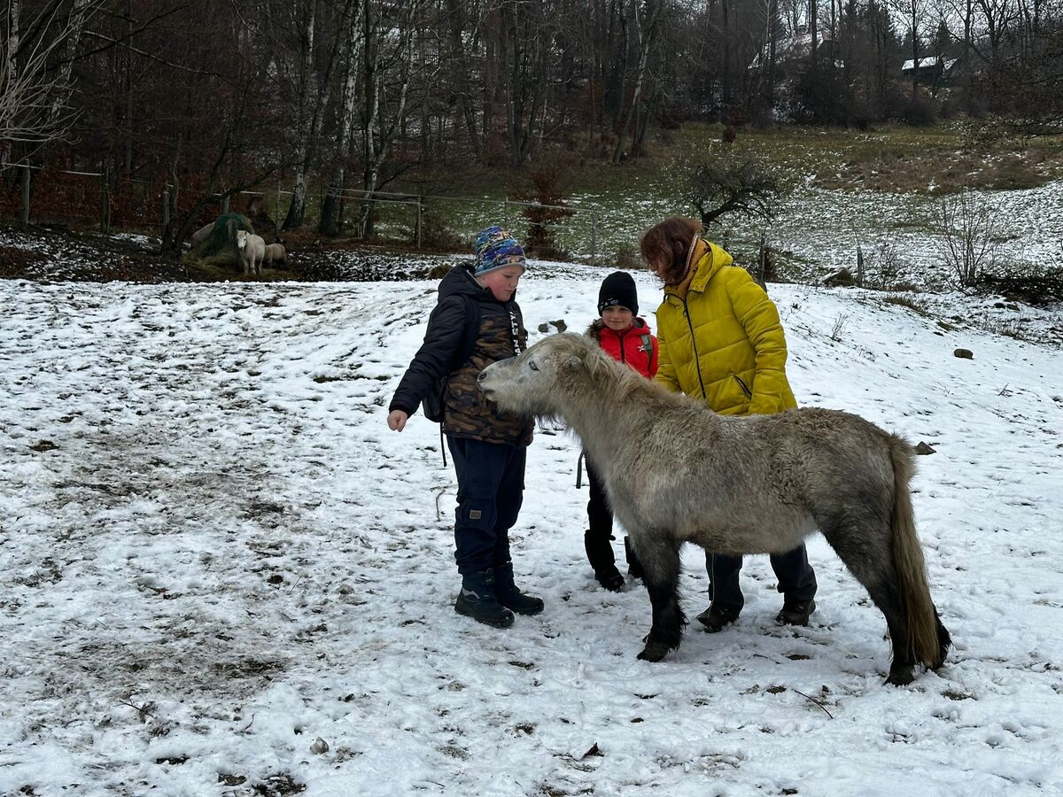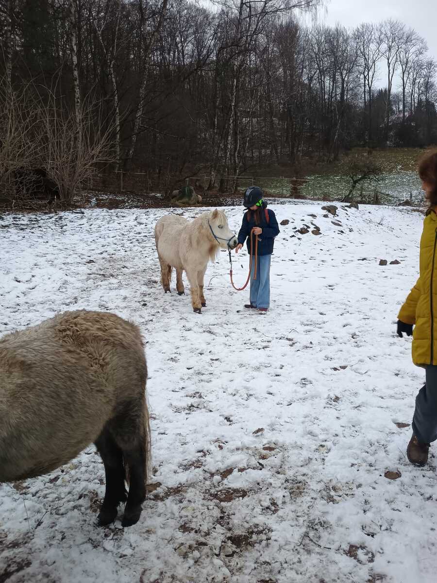 S dětmi z „Turisťáku“ jsme se opět vypravili na návštěvu zvířátek. Tentokrát nás vřele přivítala majitelka usedlosti v Lísce p. M. Pospíšilová. Zde to mají trochu jinak. Chovají se zde poníci ke kontaktní terapii. Ve výběhu na nás čekali tři certifikovaní poníci a nově hříbě Irského coba. Terapie zde navštěvují rodiče s dětmi, ale je vhodná i pro seniory a vlastně všechny, které uklidní a navodí příjemné pocity dotek zvířete. Zvířata jsou opravdu velmi milá, přítulná a dobře vychovaná.