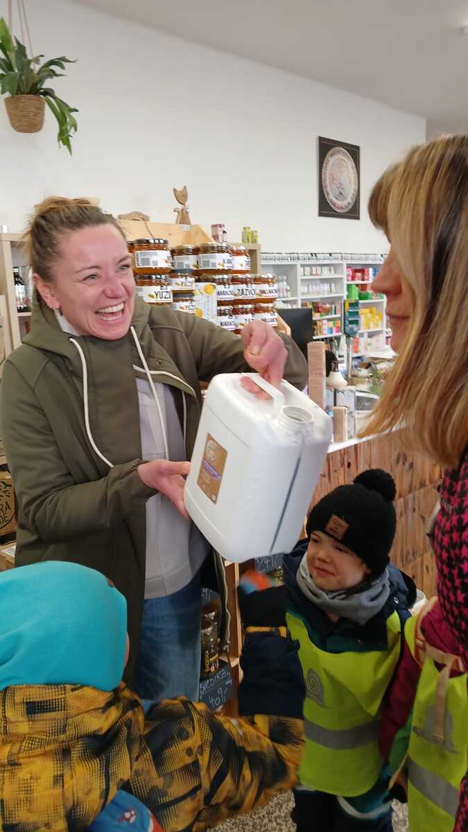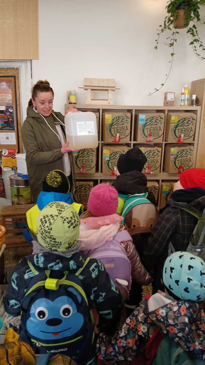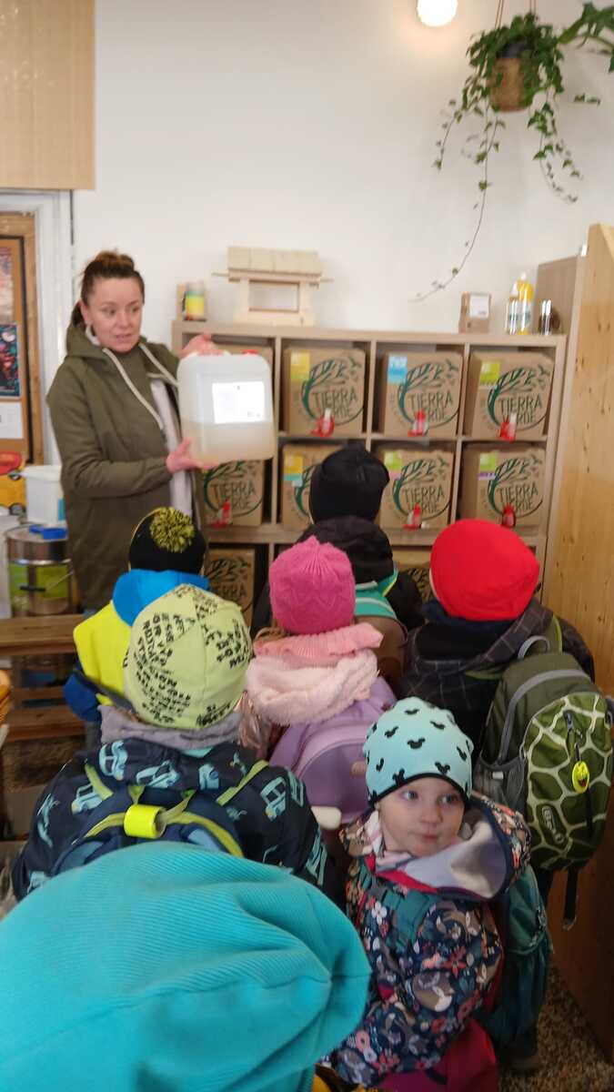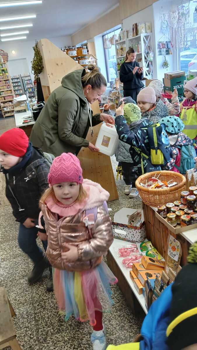 V prodejně děti viděly například med od místního včelaře, mléčné výrobky, různé druhy čajů a kávy, ale také přírodní kosmetiku a především ekologickou drogerii bez zbytečné chemie. Paní prodavačky dětem vysvětlily, co znamená bezobalový prodej, proč je důležité omezovat plastové obaly a jak si lidé mohou nosit vlastní nádoby. Děti si mohly některé produkty prohlédnout a ptaly se na jejich původ i využití.