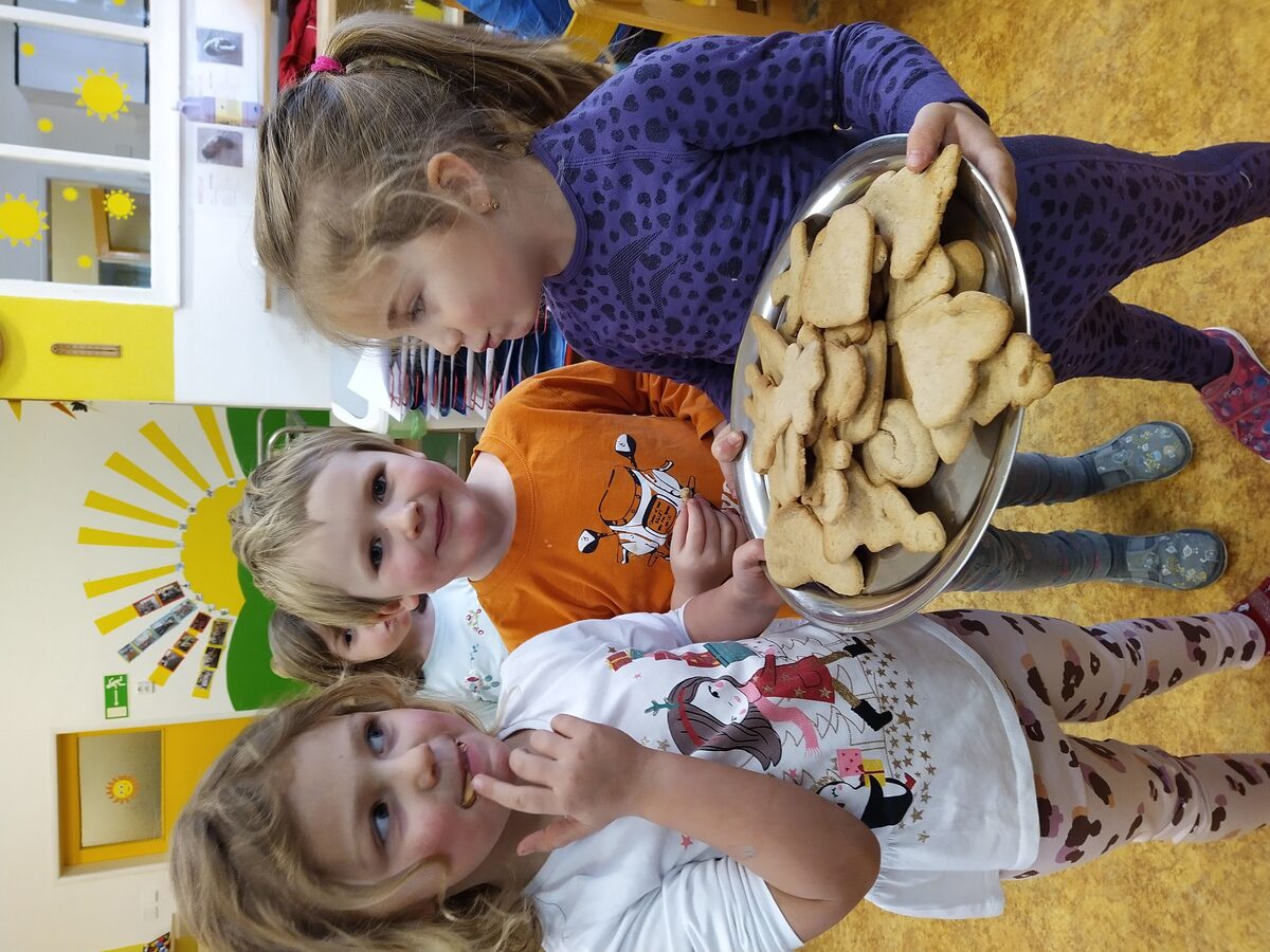 Dnes nás ve školce navštívila Sv. Lucie:-)... ...zrovna jsme si s dětmi povídali o zvycích spojených s postavou Sv. Lucie, když v tom někdo zaklepal na naše Sluníčkové dveře!....A jaké to bylo pro děti překvapení, když do třídy vstoupila sama Svatá Lucie! A nepřišla s prázdnou!...Hodným dětem totiž Lucinky nosívaly něco dobrého a ani u nás to dnes nebyla výjimka. Sv. Lucie nám přinesla suroviny na pečení medových perníčků:-) Děti se ihned s radostí pustily do dělání těsta, válení a vykrajování. Nakonec zaúkolovaly i naše paní kuchařky, které poprosily o upečení vytvořených perníčků:-). Tak, jak krásně voněly pečící se perníčky naší školkou, tak i dobře všem dětem chutnaly! Děkujeme Ti, Lucinko a budeme se těšit na příští rok!!!