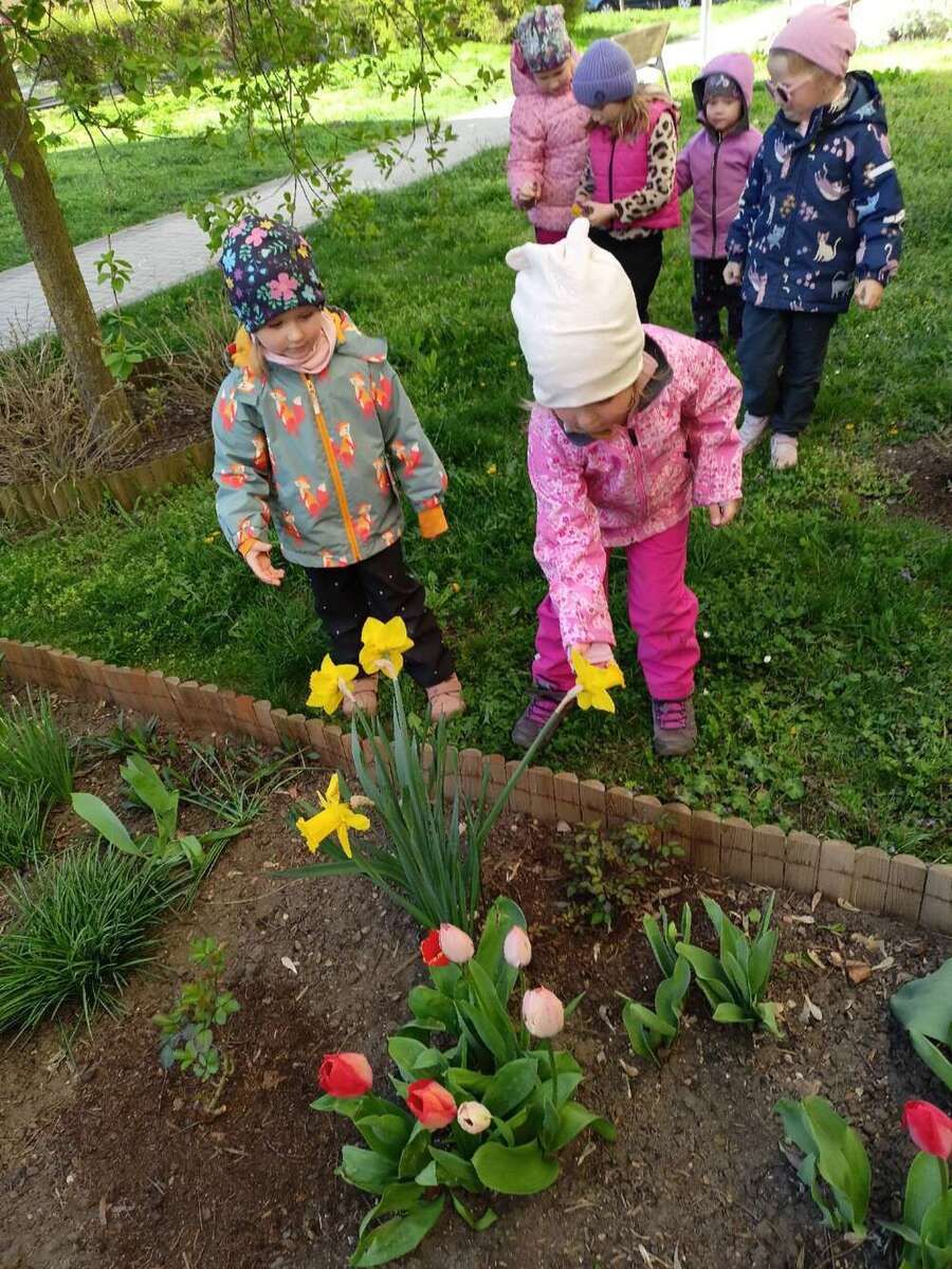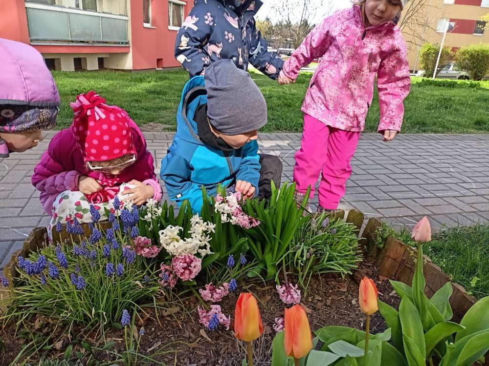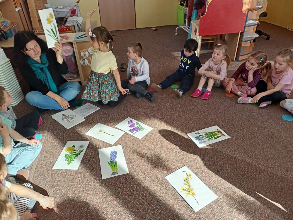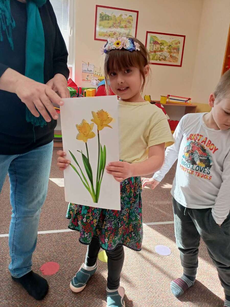 Třída Krtečků se ráno věnovala výuce o jarních květinách a