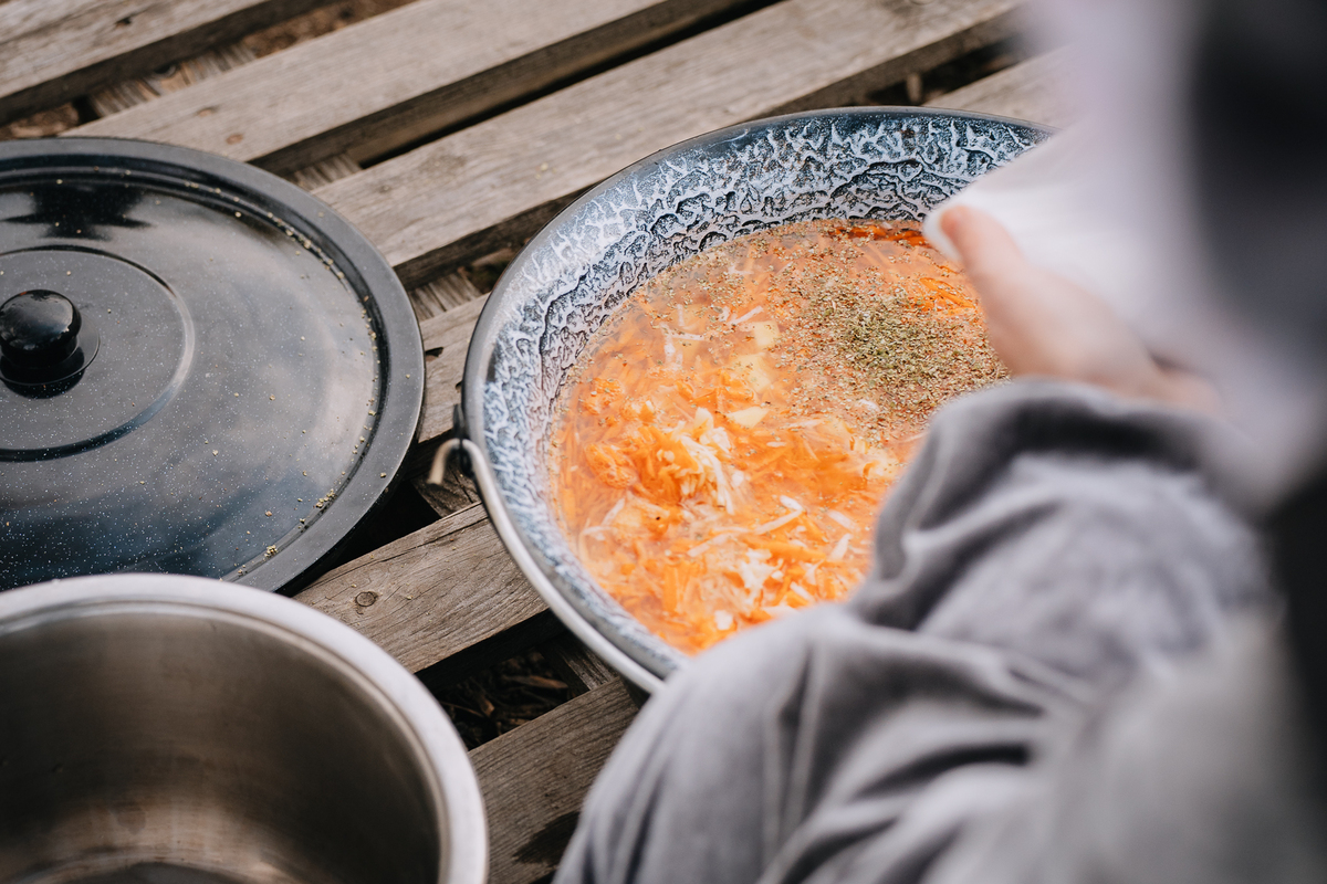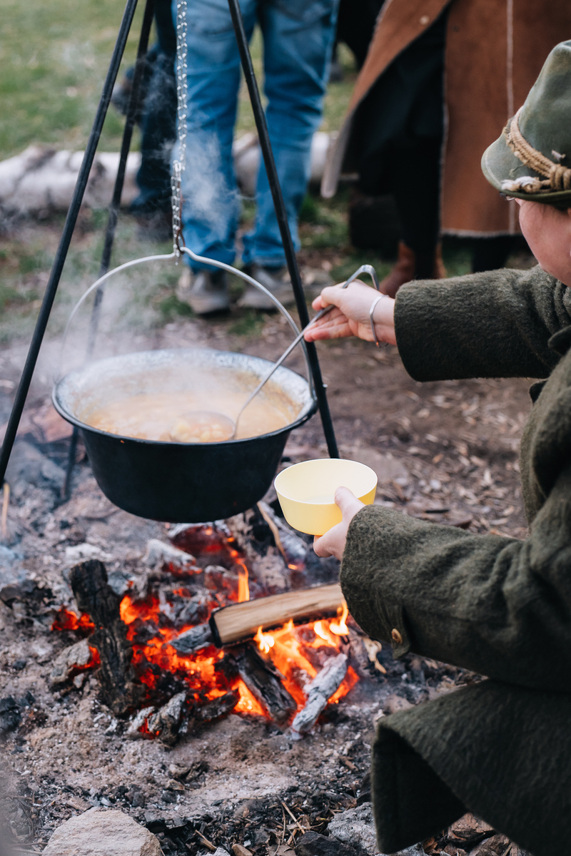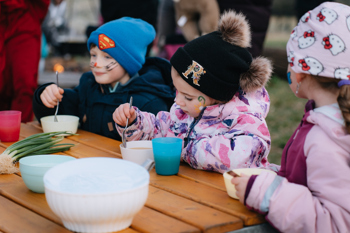 Společně jsme v kotlíku na ohni uvařili poctivou, zdravou bramboračku. (Rodiče nám v průběhu týdne nosili potřebné suroviny do školky.)