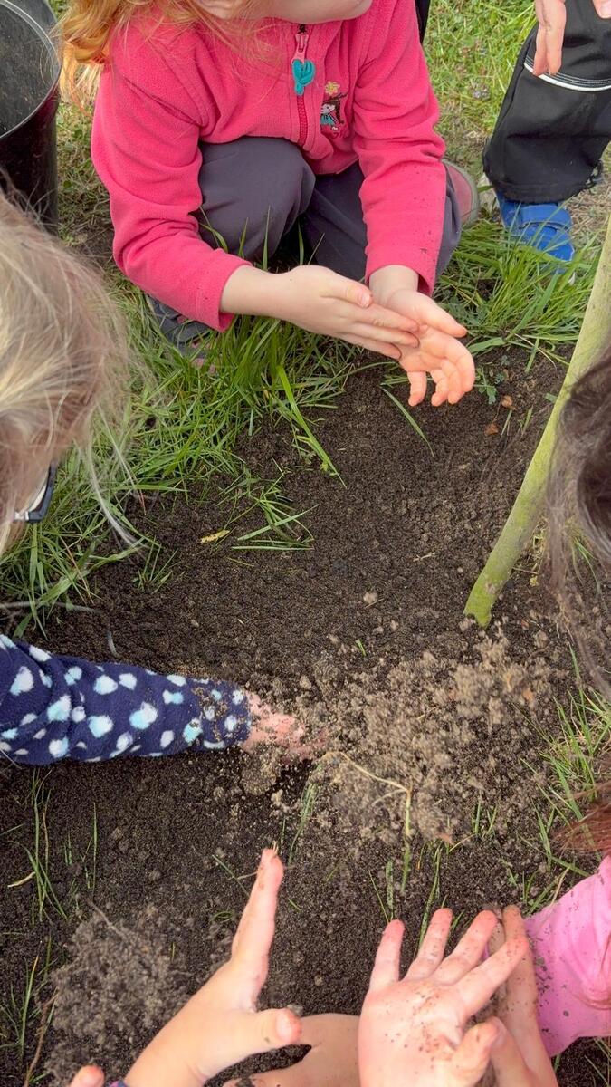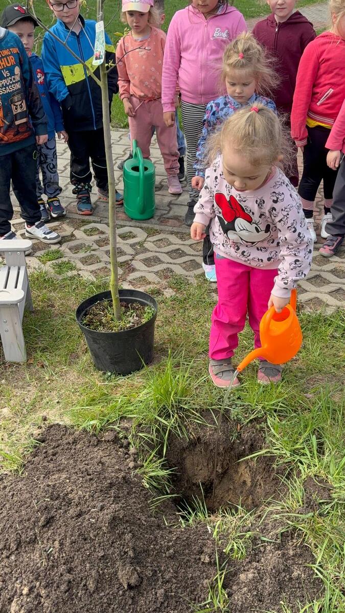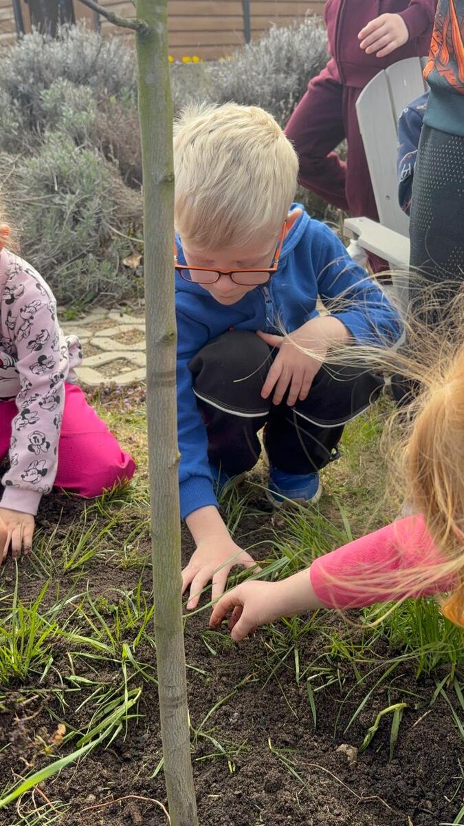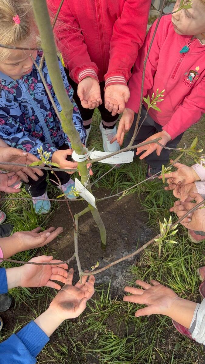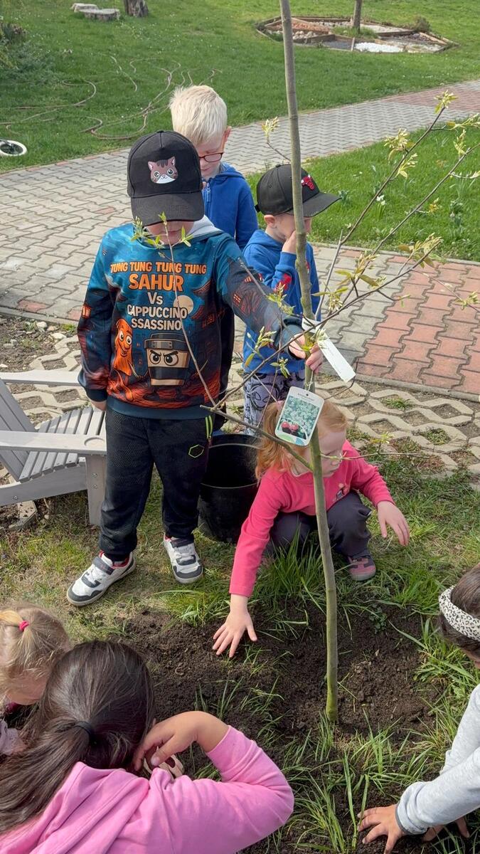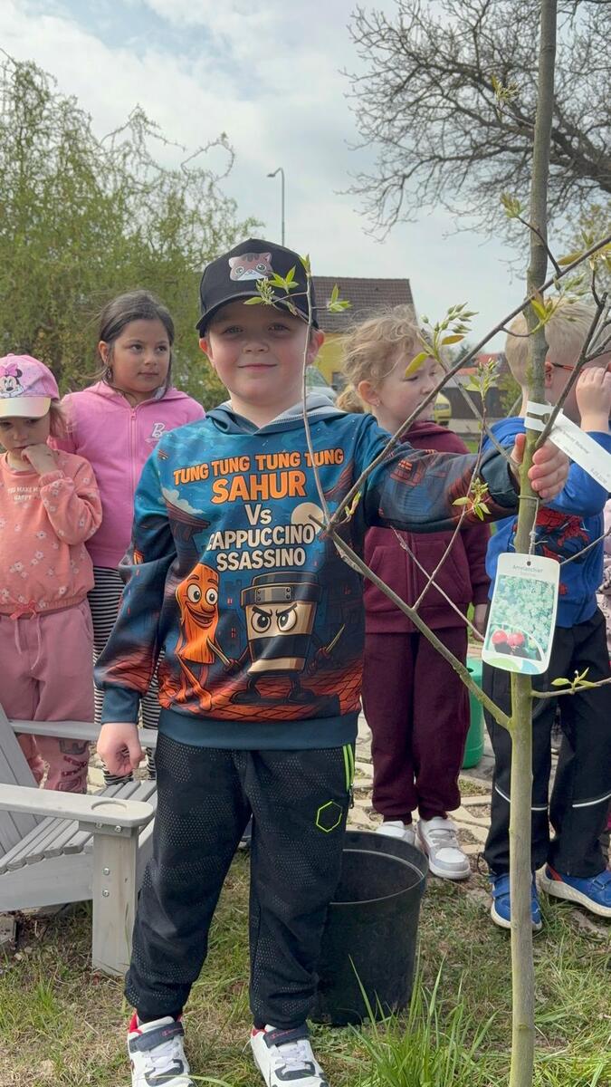 Na naší zahradu patří nejen jedlé ovocné keře a květiny, ale i stromy, které budou plodit chutné ovoce. Dnes si děti společně zasadily vedle třešně, jabloně, hrušně, slívy, broskvoně a meruňky nový přírůstek v podobě muchovníku. Poskytne dětem nejen stín, ale i možnost mlsání.