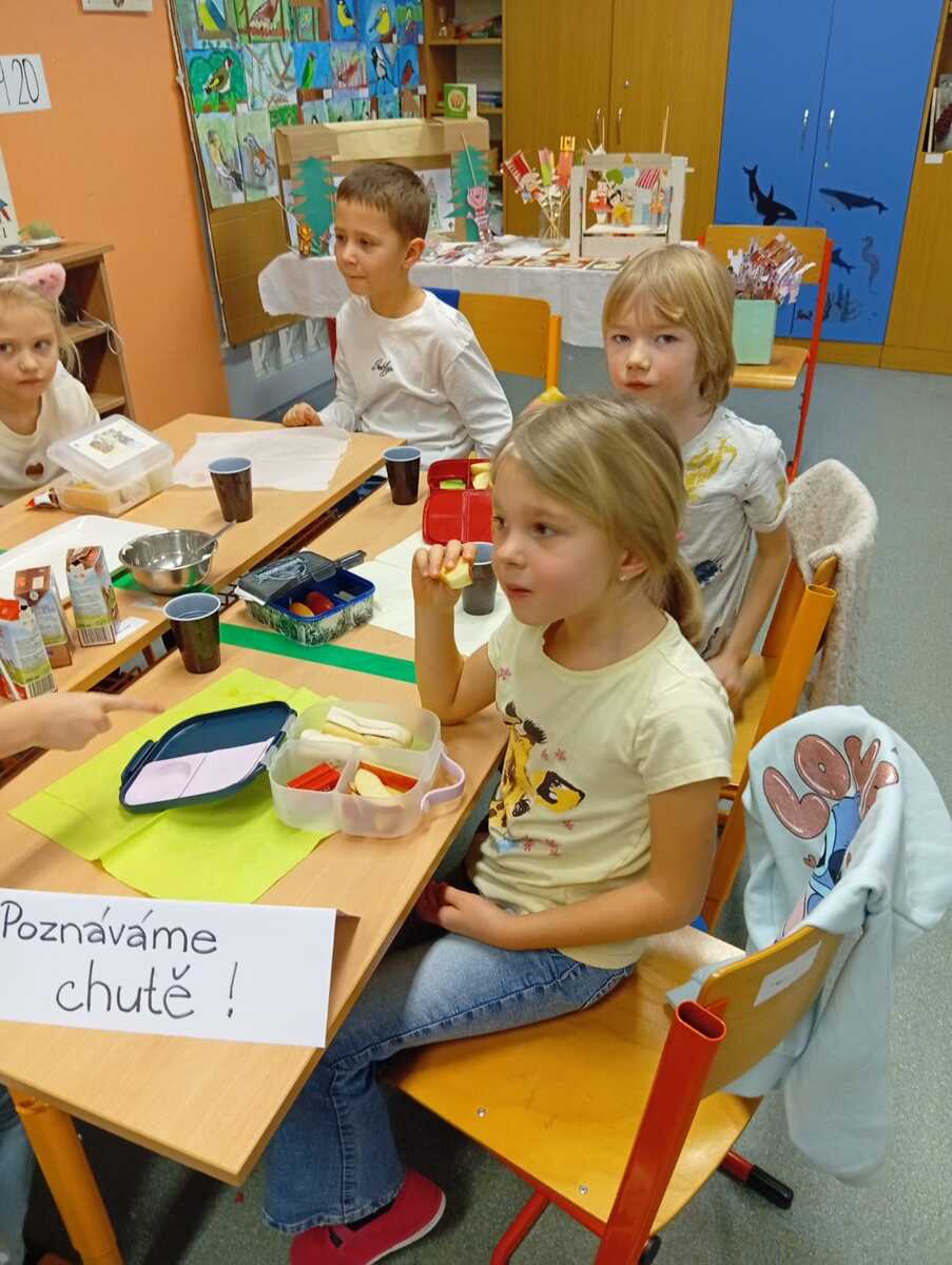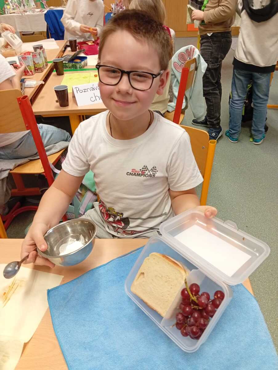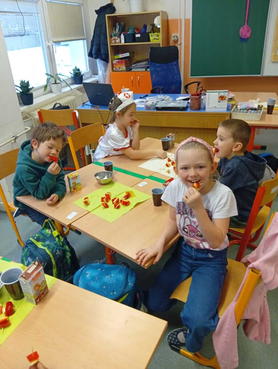 V rámci výukového programu se žáci třídy 1.B vydali na cestu objevování nových chutí a správných stravovacích návyků. Společně jsme si povídali o neplýtvání jídlem, ochutnávali mléčné výrobky a děti si také samostatně připravily zeleninové chuťovky.