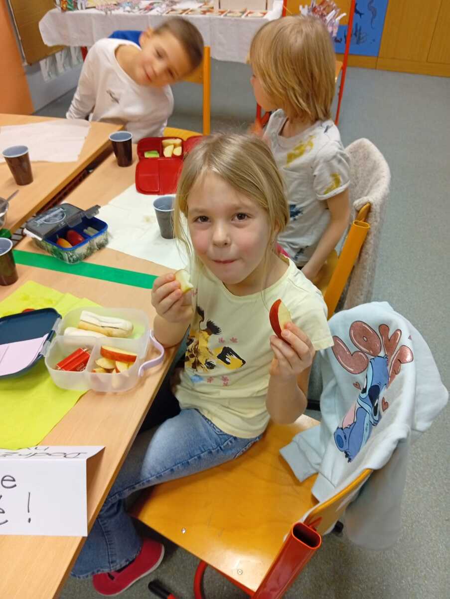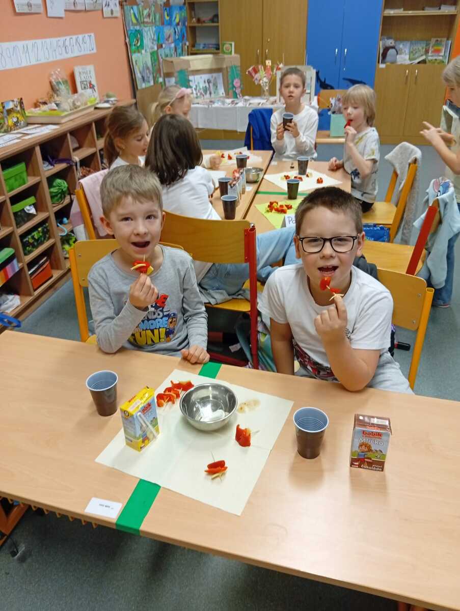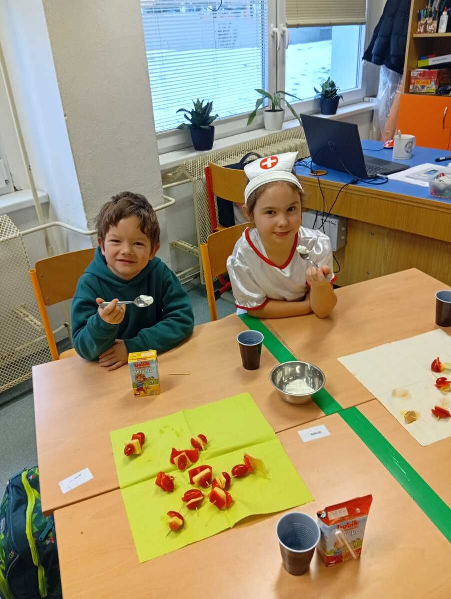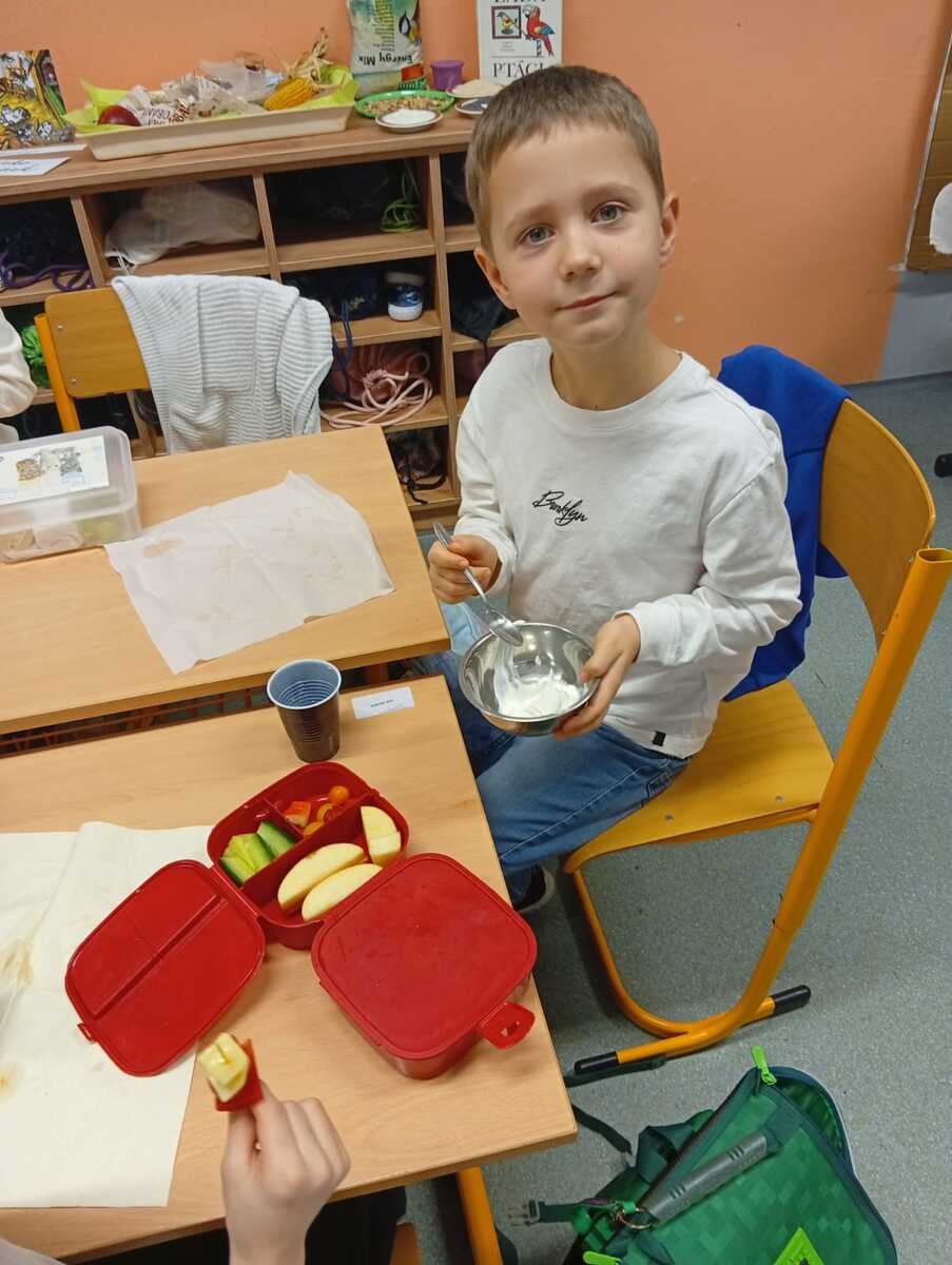 V rámci výukového programu se žáci třídy 1.B vydali na cestu objevování nových chutí a správných stravovacích návyků. Společně jsme si povídali o neplýtvání jídlem, ochutnávali mléčné výrobky a děti si také samostatně připravily zeleninové chuťovky.
