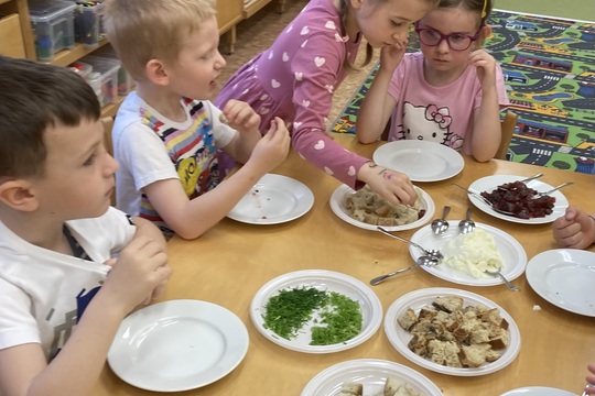 S dětmi jsme si užili a ochutnávali tři druhy chleba. Vyrobili jsme si ze smetany máslo, přidali námi vypěstované bylinky. Také jsme ochutnali s chlebem i bio džem z rybízu.