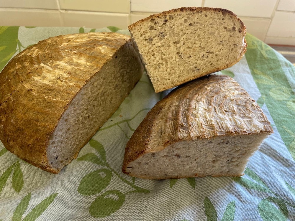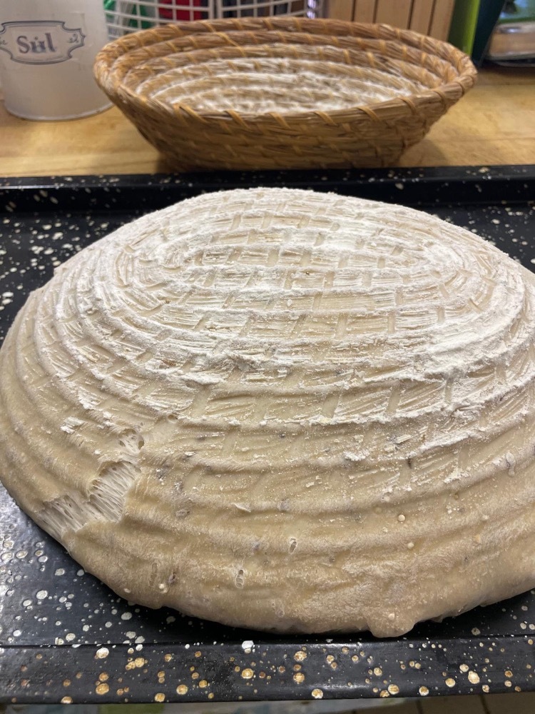 V naší školce to při vaření a pečení krásně voní. Stejně, jako když vaří maminky, nebo babičky doma. Naše paní kuchařka dostala domácí kvásek, zadělala těsto, přidala slunečnicová a chia semínka, nechala kynout do ošatky a upekla křupavý výborný chleba. Děti celý postup pozorovaly a z výsledku byly nadšené. Mooooc jim chutnal.