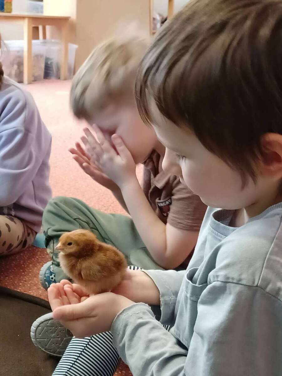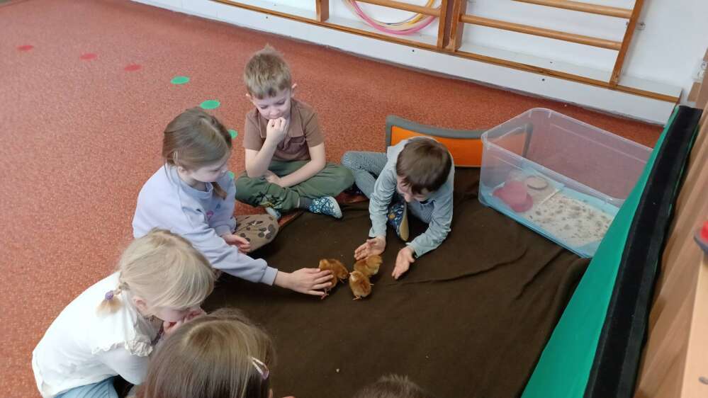 Děti jsou nadšené a natěšené, že mohou pozorovat celý proces od přípravy zázemí až po první pomazlení s kuřátky.