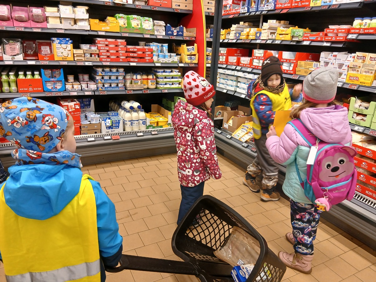 Nejprve jsme si ve třídě povídali o tom, co všechno je potřeba k upečení housek. Děti se rozdělily do menších týmů a každý tým vytvořil svůj vlastní nákupní seznam. Společně jsme si vysvětlili, kde se jednotlivé suroviny v obchodě nacházejí a jak je při nákupu poznáme.