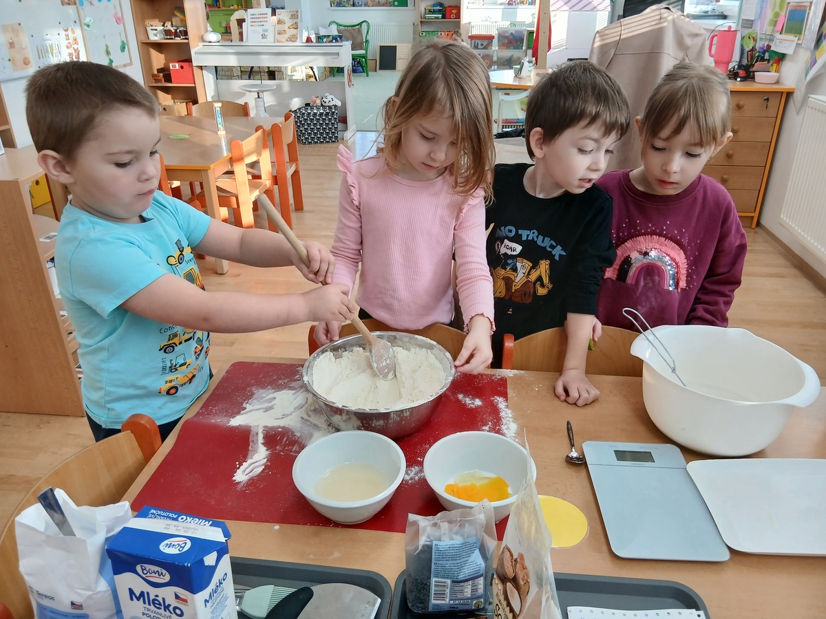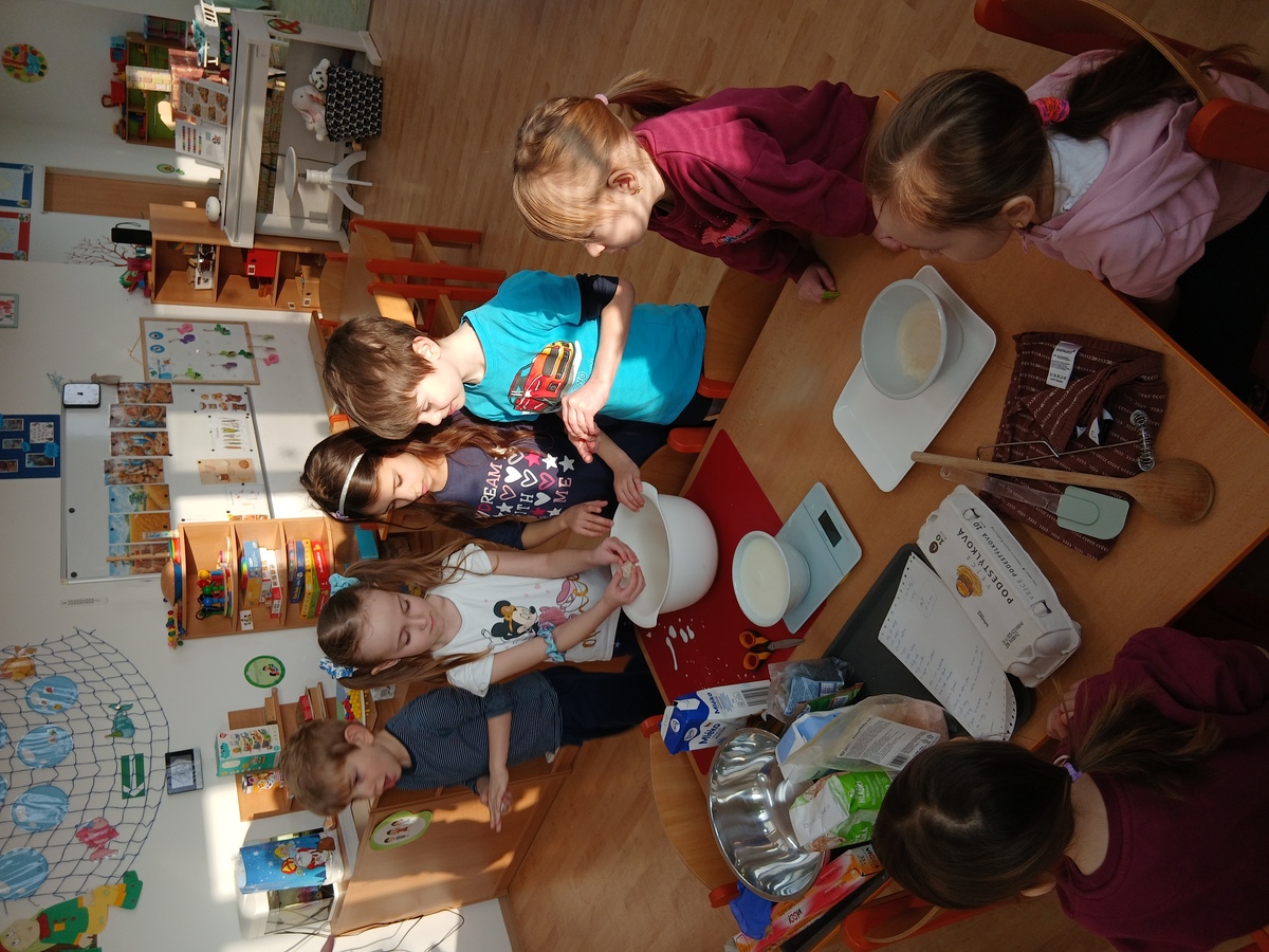 Dnes jsme se pustili do projektu, který dětem přiblížil cestu od nákupu surovin až po vlastní upečené pečivo. Děti se proměnily v malé pekaře a celý proces si mohly samy vyzkoušet – od plánování až po ochutnávku.