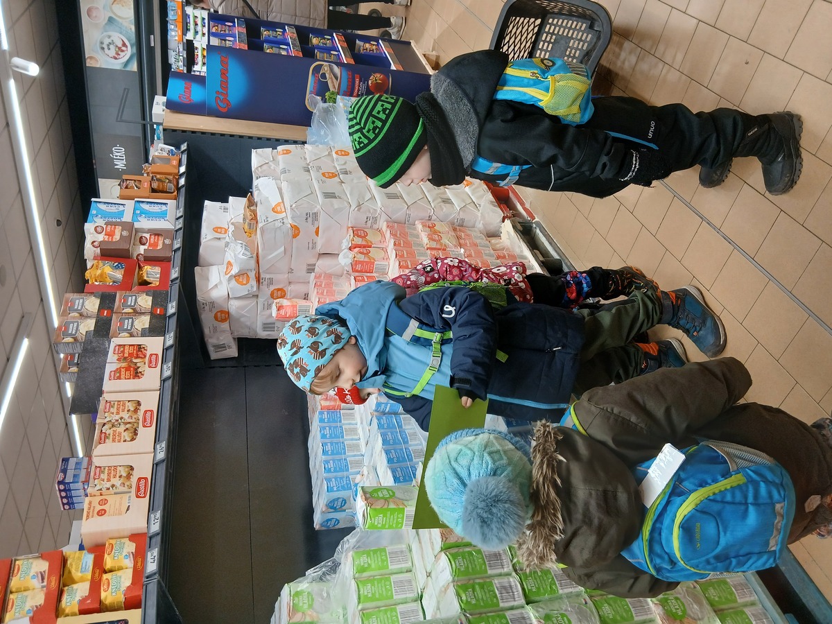 Poté jsme se vydali do obchodu. Děti podle svých seznamů samy vyhledávaly potřebné suroviny – mouku, droždí, sůl i další ingredience. Učily se orientovat v obchodě, spolupracovat a kontrolovat, zda mají na seznamu vše, co potřebují. Po úspěšném nákupu jsme se vrátili do mateřské školy, kde začala ta nejvoňavější část našeho projektu.