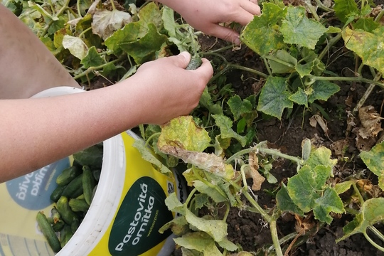 V okurkové sezóně nám místní obyvatelé nabídli přebytky okurek. Proto jsme se vydali na pole, kde jsme bohatou úrodu posbírali a společně zavařili pro potřeby mateřské školy.